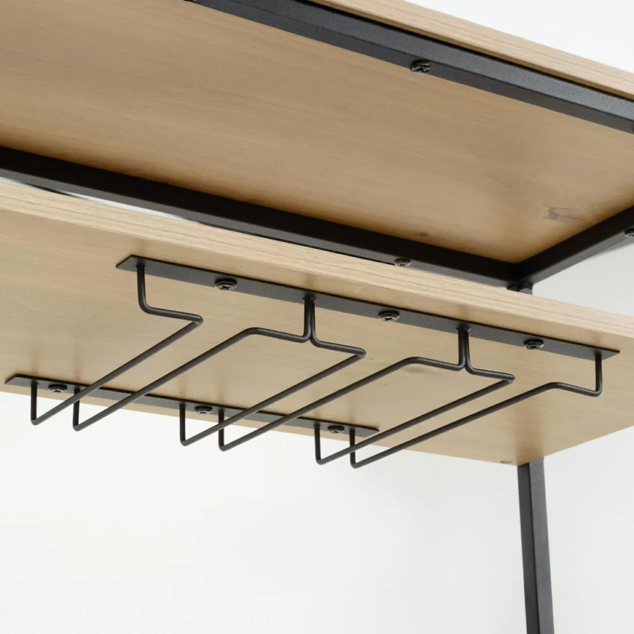 - Uchwyty na kieliszki – 3 wbudowane uchwyty pozwalają elegancko zawiesić kieliszki, tworząc profesjonalny wygląd „domowego baru”.