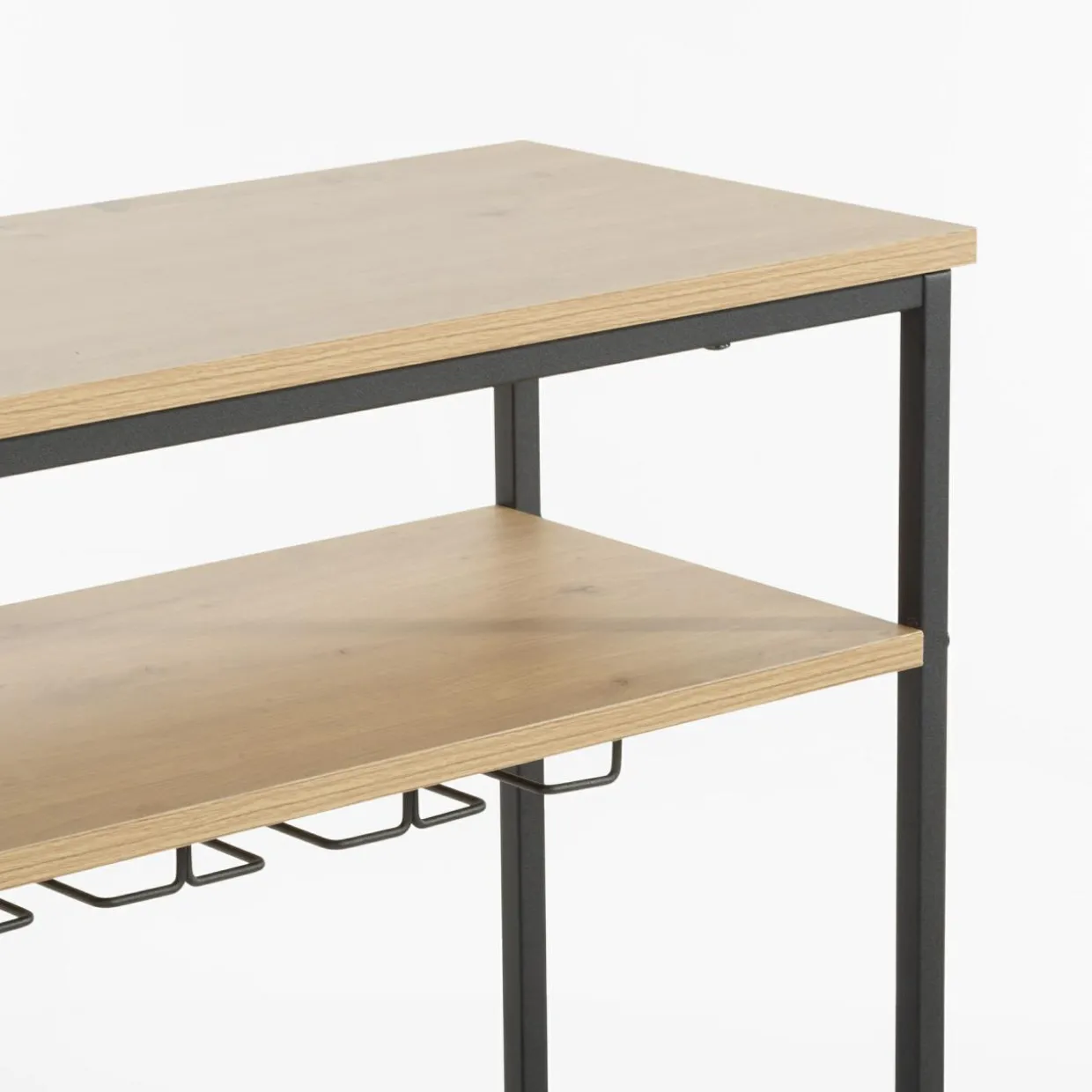 - Praktyczne półki – górna półka świetnie sprawdzi się na akcesoria barowe, a dolne poziomy na butelki lub inne przedmioty.