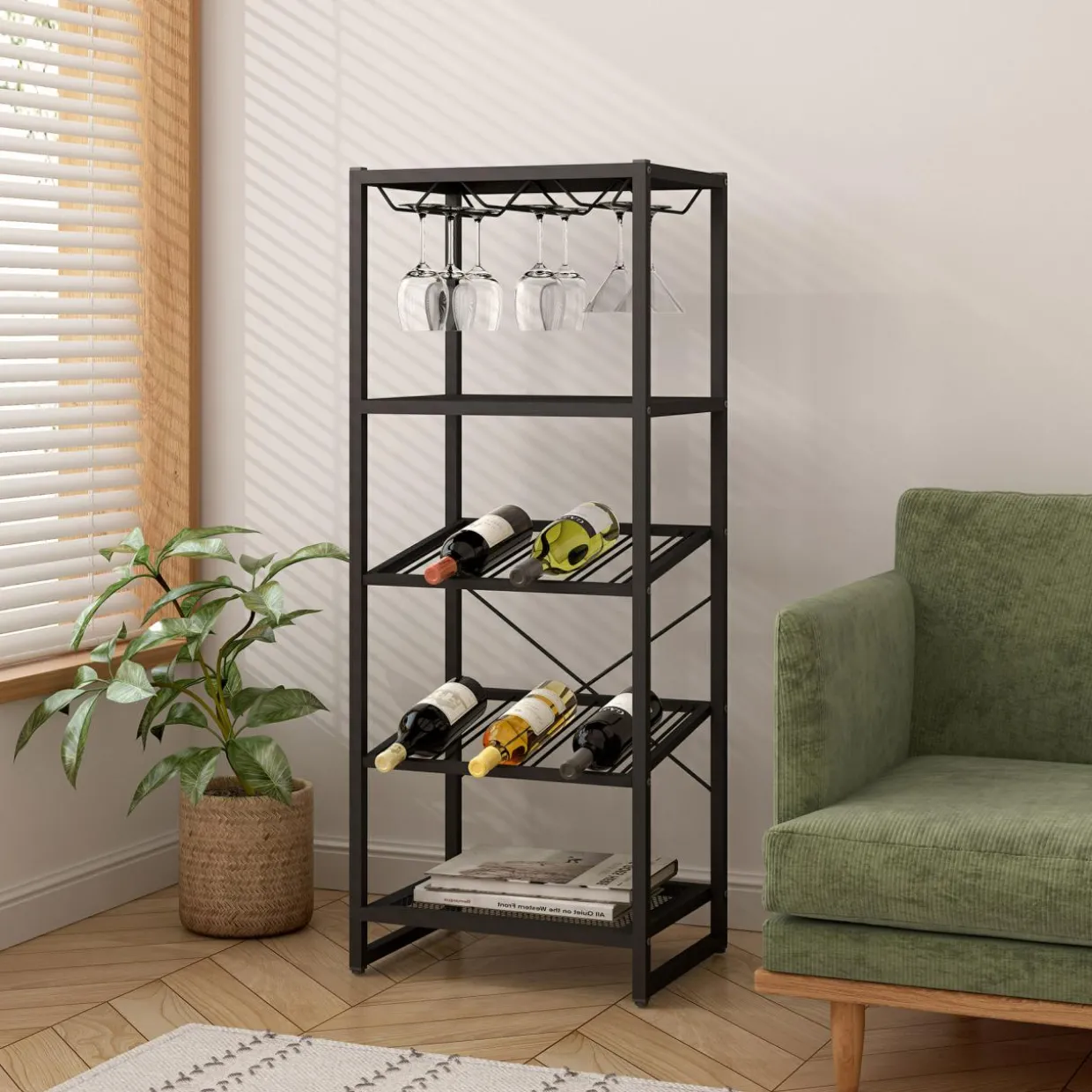 - Regał posiada uchwyty na kieliszki, dzięki czemu możesz od razu rozpocząć degustację.