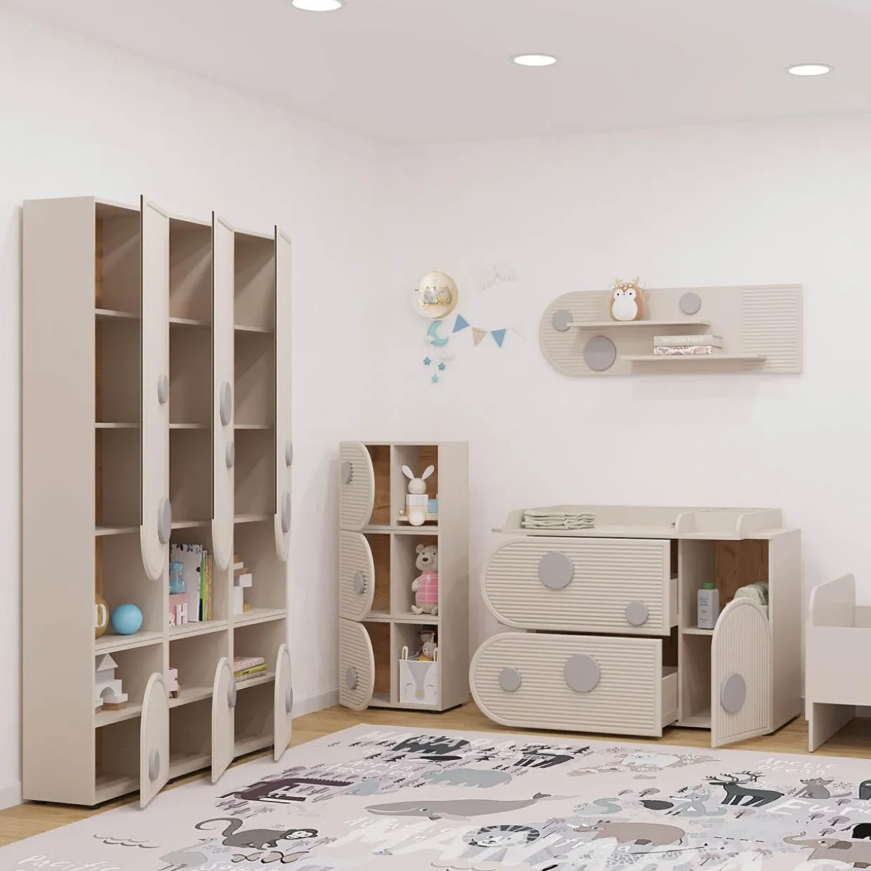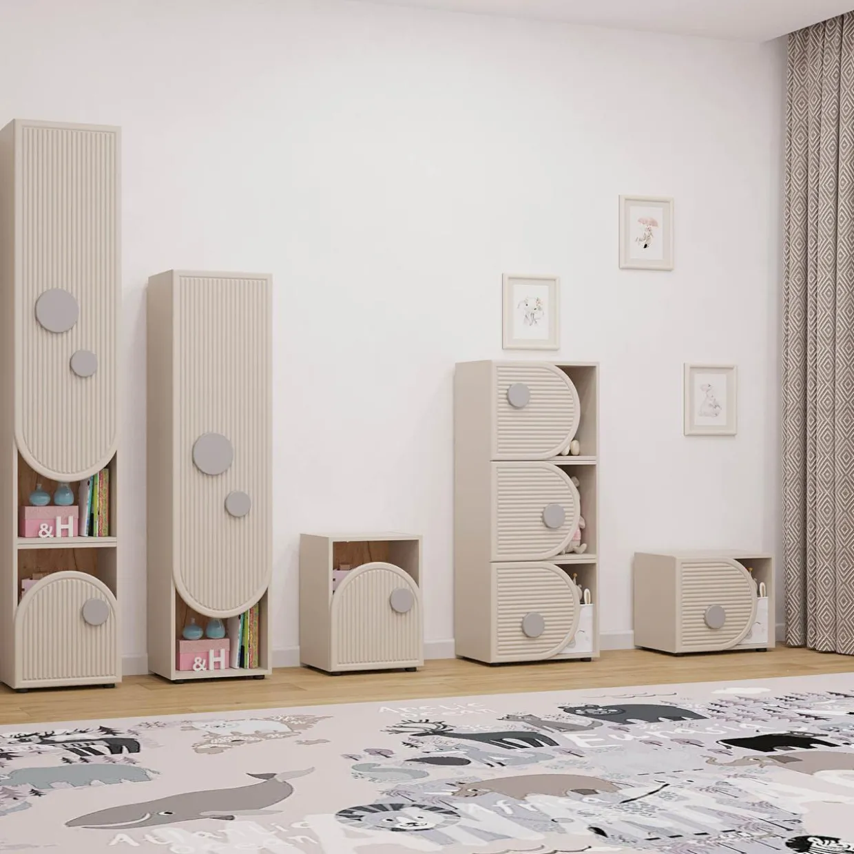 - Delikatne ryflowanie i szare elementy dekoracyjne świetnie wpiszą się w nowoczesne wnętrze, a także podkreślą dziecięcą kreatywność.