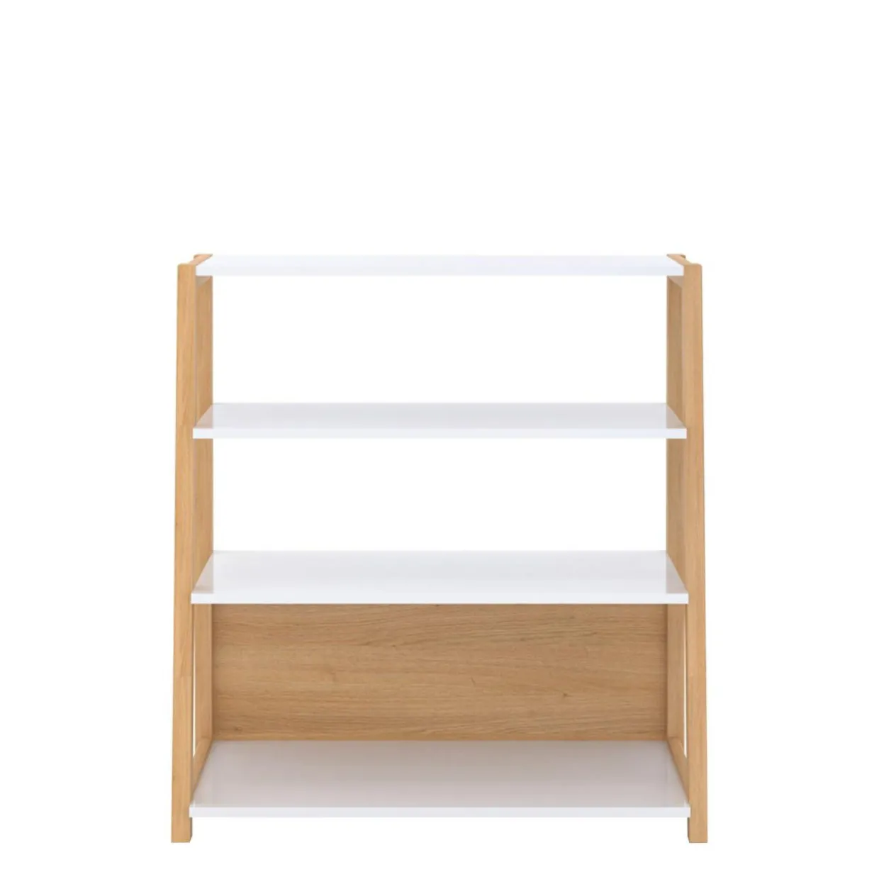 - Półki są zaprojektowane w formie drabinki. Każda półka posiada inną głębokość, zmniejszającą się ku górze.