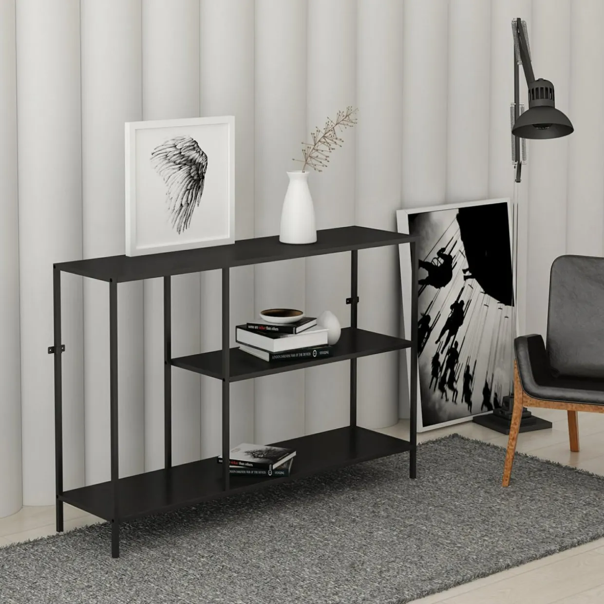 Otwarty niski regał do salonu