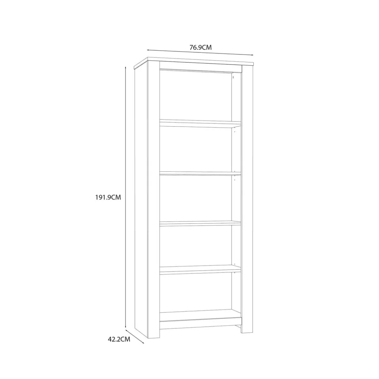 - Przestrzeń regału jest przedzielona półkami, łącznie masz 5 wnęk do wykorzystania