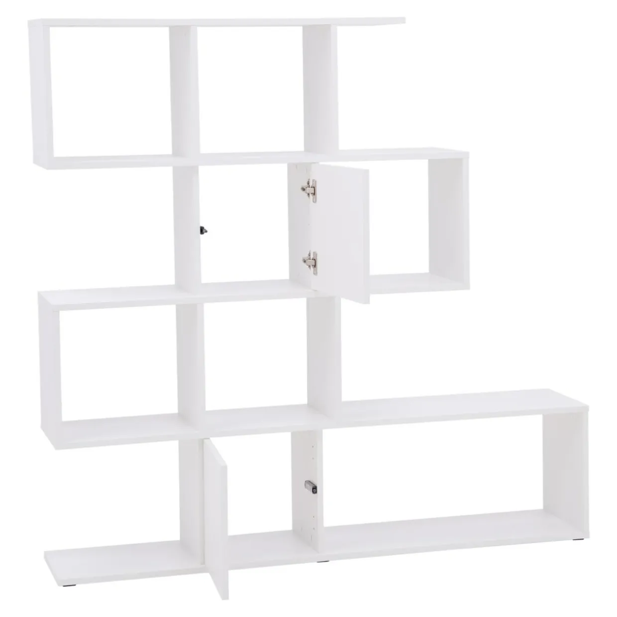 - Ciekawe rozmieszczenie półek i 2 wnęki ukryte za drzwiami pozwolą łatwo ułożyć książki, dekoracje i drobne akcesoria.