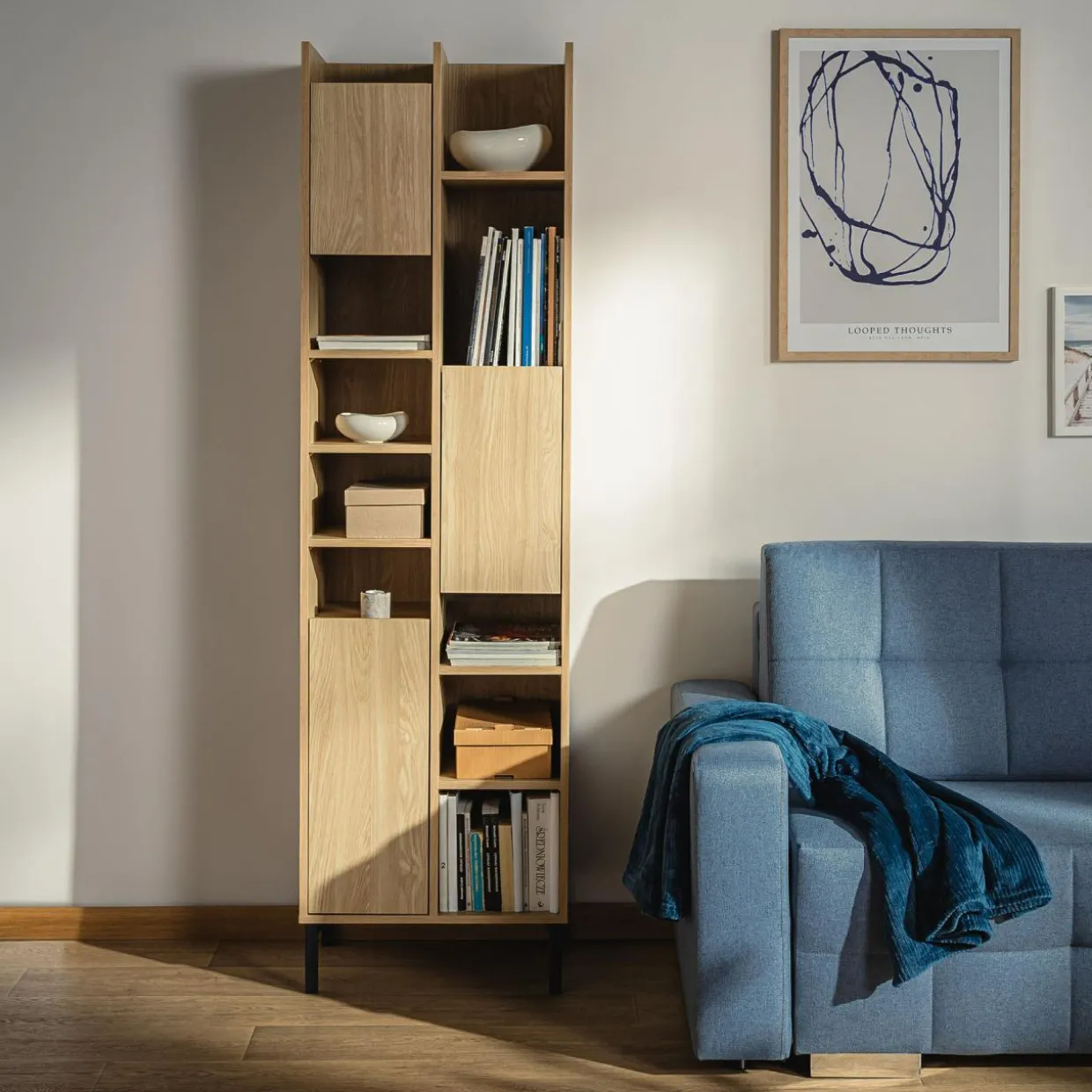 Regał SERGIO ma tylko 55 cm szerokości. Wykorzystaj maksymalnie dostępną przestrzeń stawiając go między meblami lub na ścianie przy wyjściu.