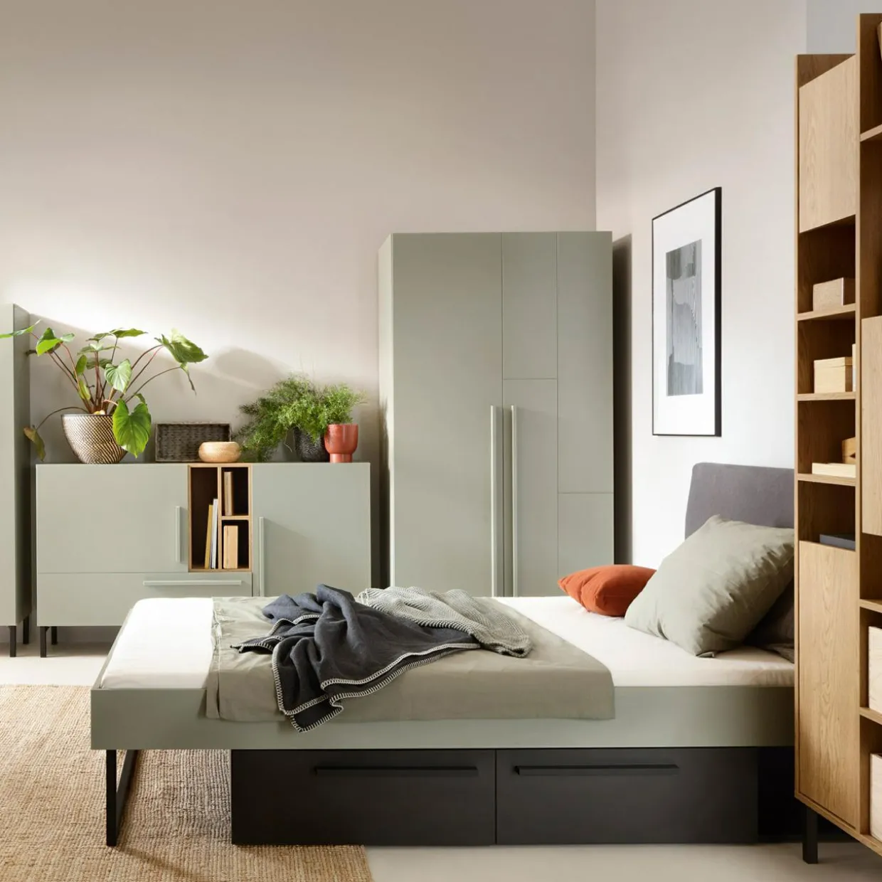 - W kolekcji występują 3 kolory mebli. Jasny eukaliptus przełamany jest dębem baltic dune i antracytem. Wyraźne elementy uwydatniają zielony odcień, podkreślając ciepło i elegancję.