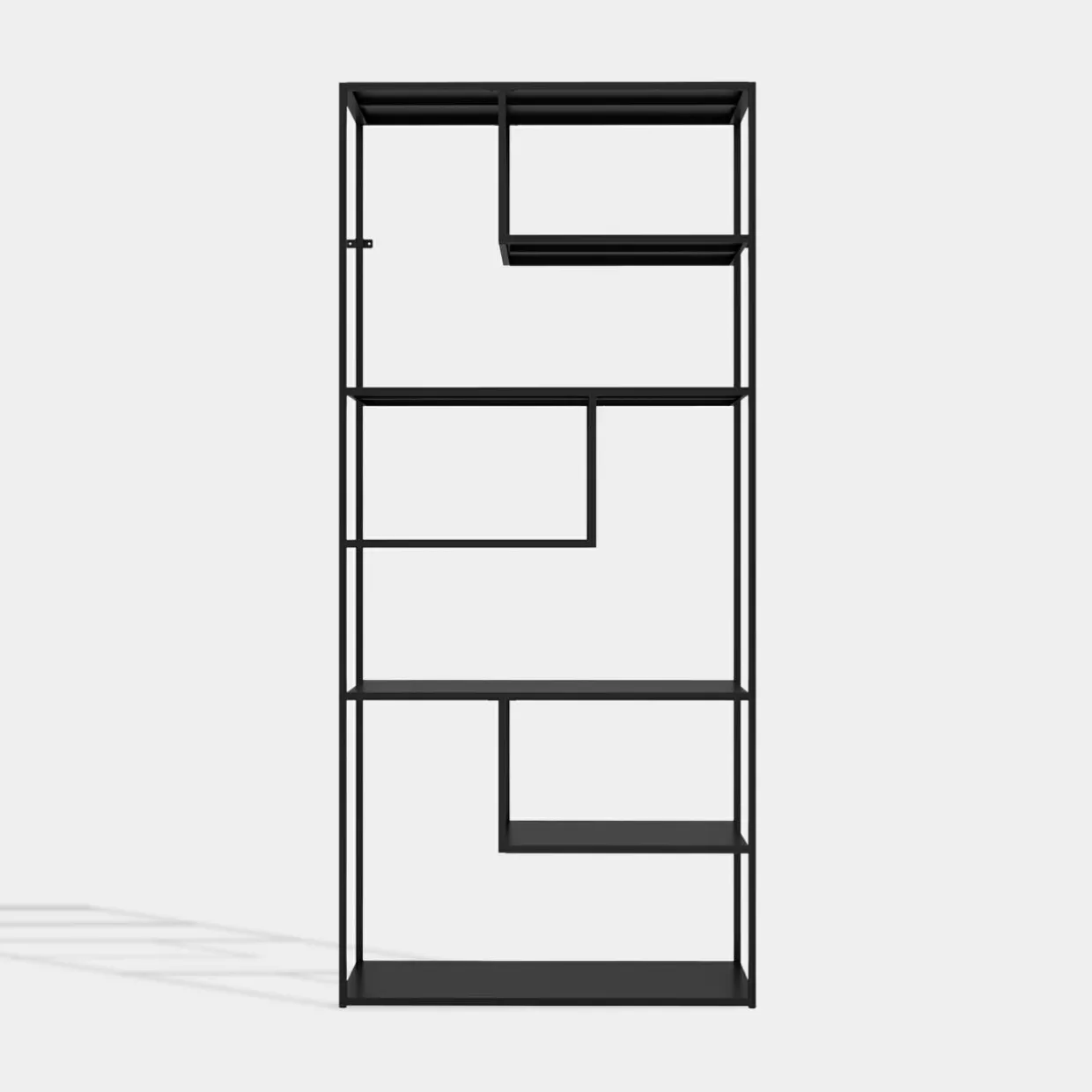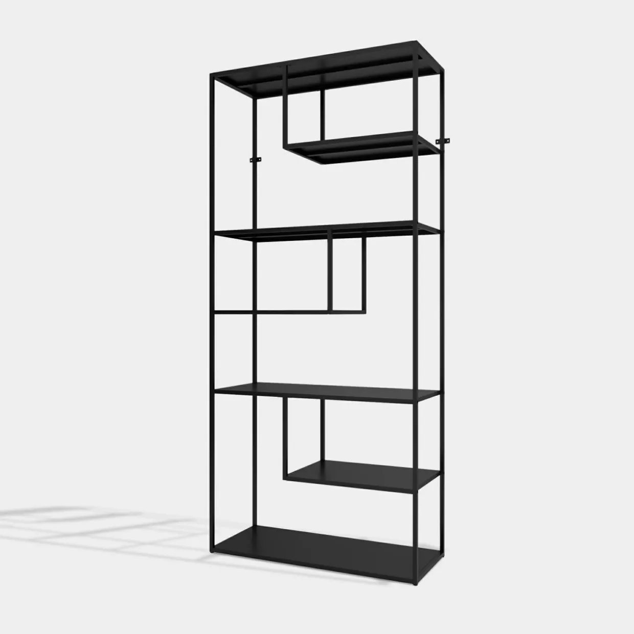 - Regał został wykonany ze stali walcowanej na zimno, co podkreśli nowoczesny i industrialny charakter wnętrza.