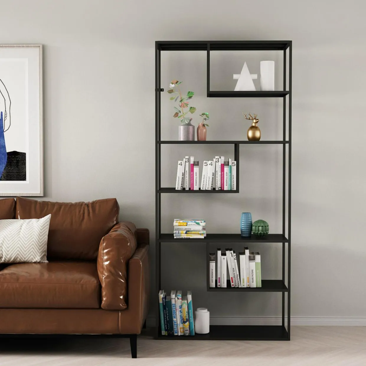 Nowoczesny regał SYLVERO ozdobi Twój gabinet lub pokój dzienny swoją niecodzienną geometryczną formą. Stwórz strefę relaksu przy lekturze, ustawiając przy nim fotel z podnóżkiem.
