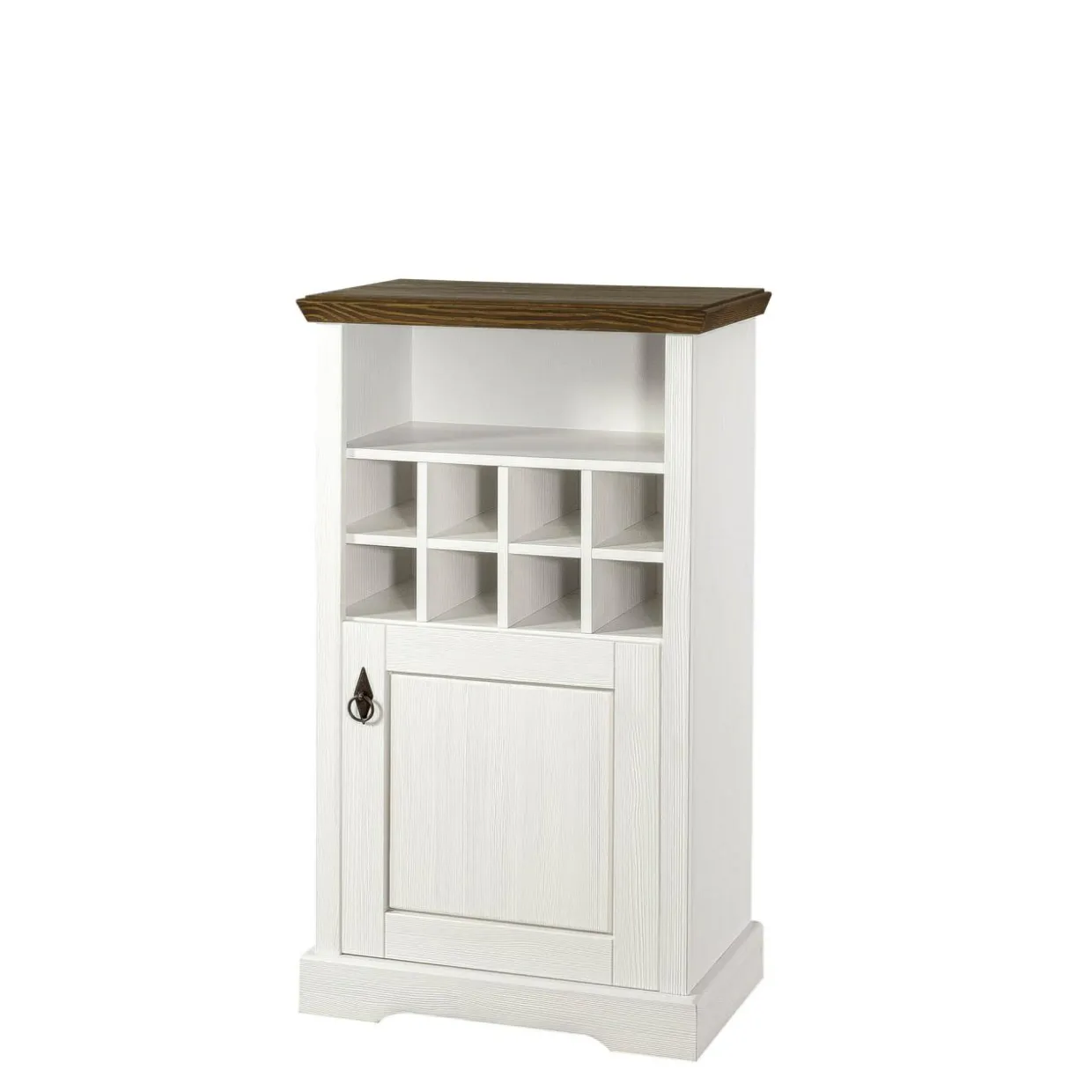 - Fronty regału z przegrodami na wino Pistoia wykonane są z 20 mm drewna sosnowego – pobielonego oraz wykończonego zabezpieczającą warstwą lakieru.