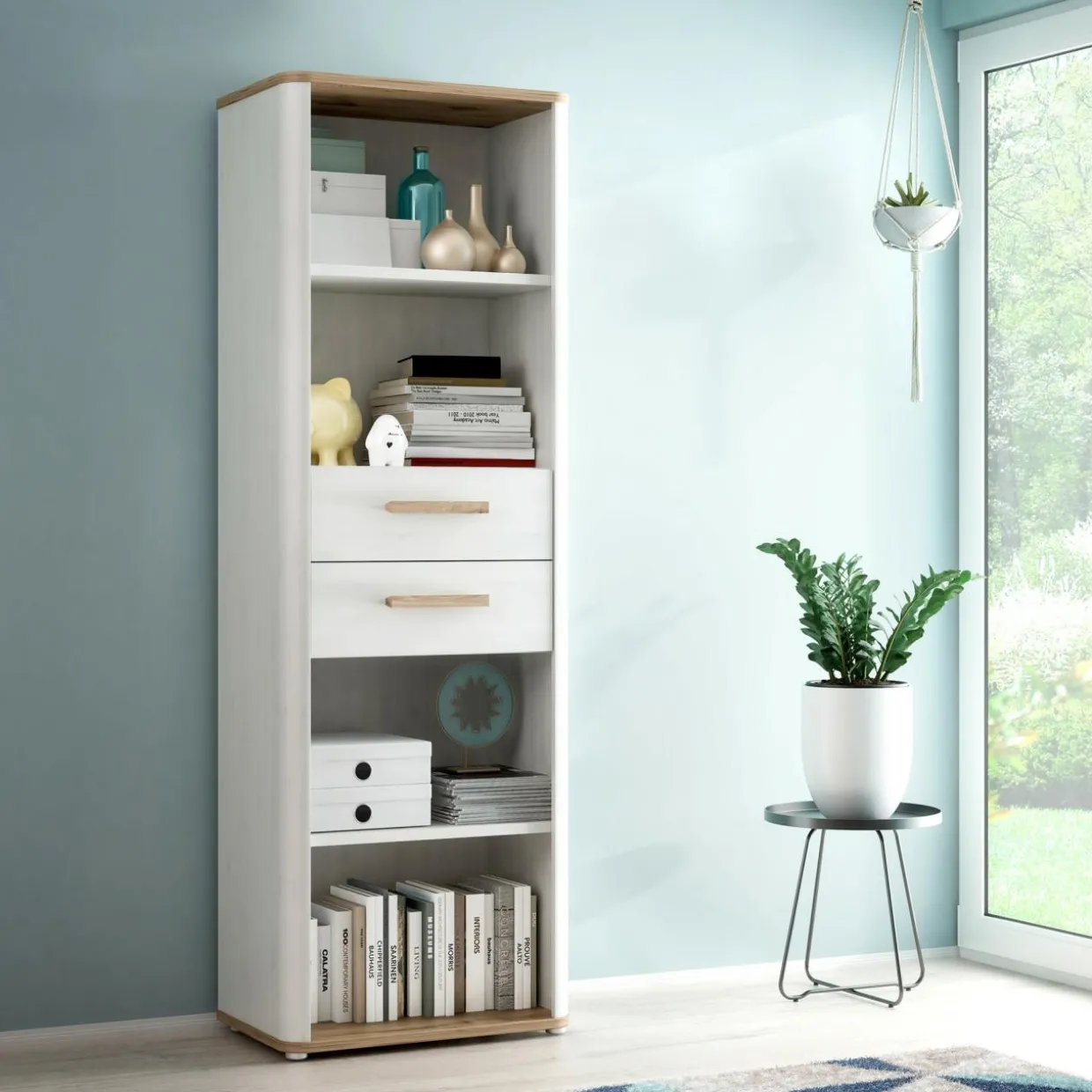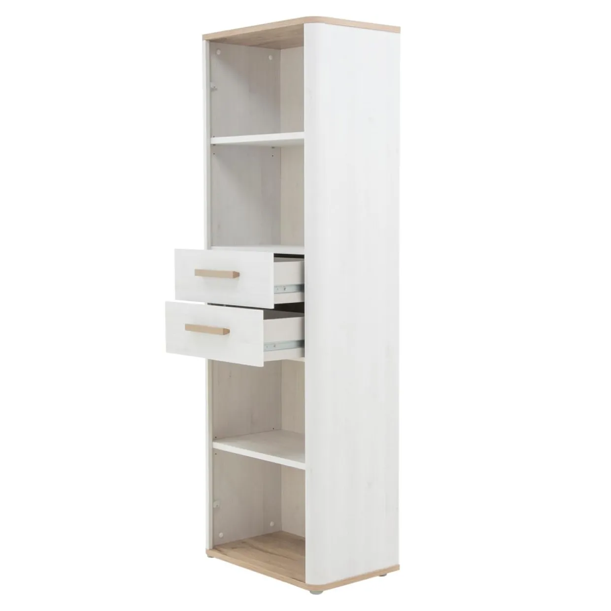 Regał z szufladami OGAI ma zaledwie 65,5 cm szerokości – zajmuje mało miejsca, jednocześnie umożliwiając przechowywanie wielu rzeczy.