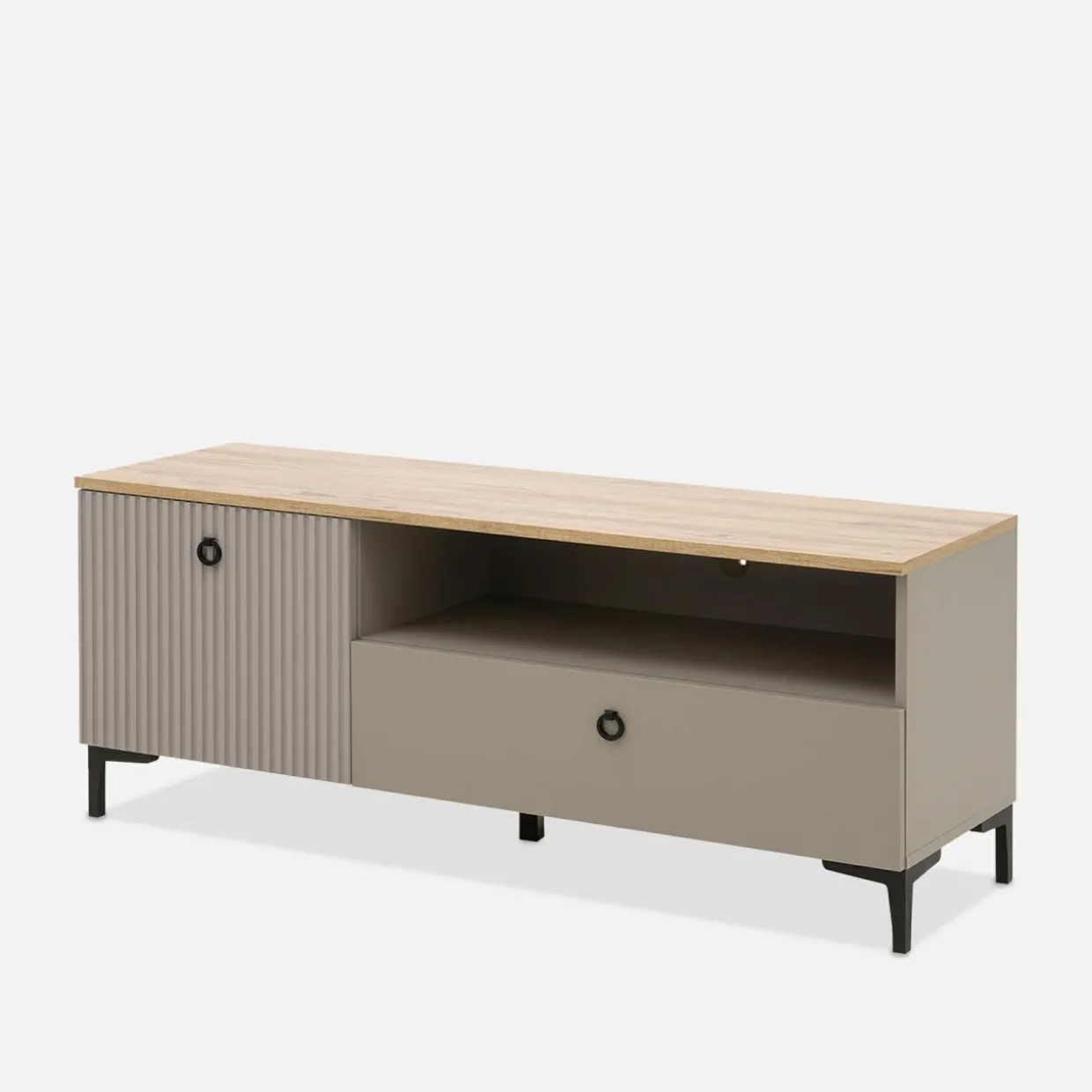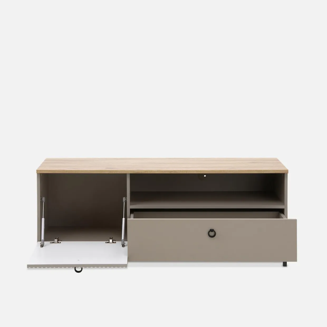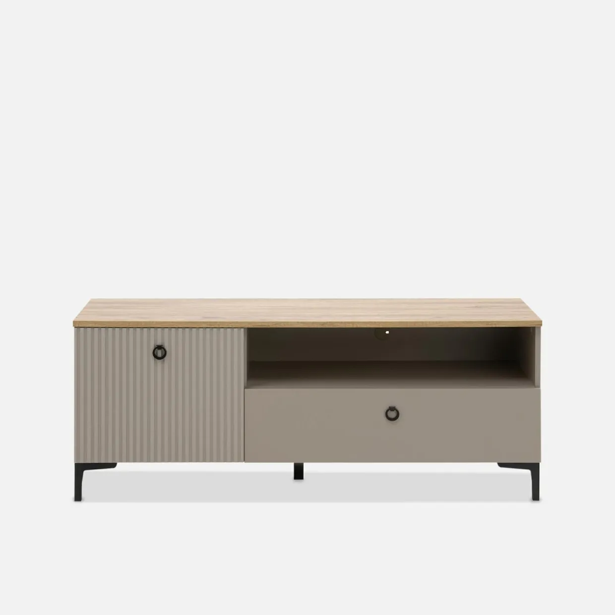 - Półka otwarta – to miejsce na dekoder, konsolę lub odtwarzacz płyt.