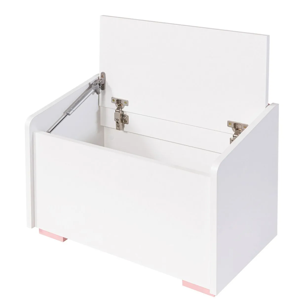 - Zawiasy ze spowalniaczem ochronią drobne palce dziecka przy przypadkowym wypuszczeniu pokrywy skrzyni.