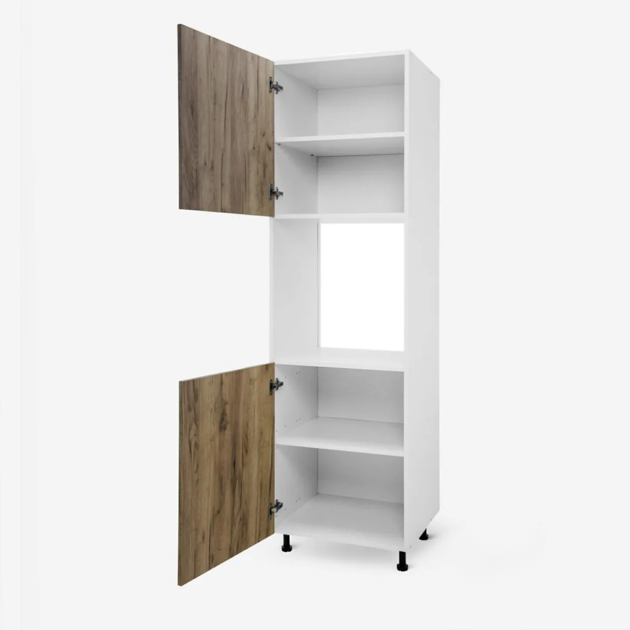 - Bryła szafki podzielona jest na 3 części – górną i dolną szafkę oraz miejsce na piekarnik – każda z szafek przedzielona jest 2 półkami.
