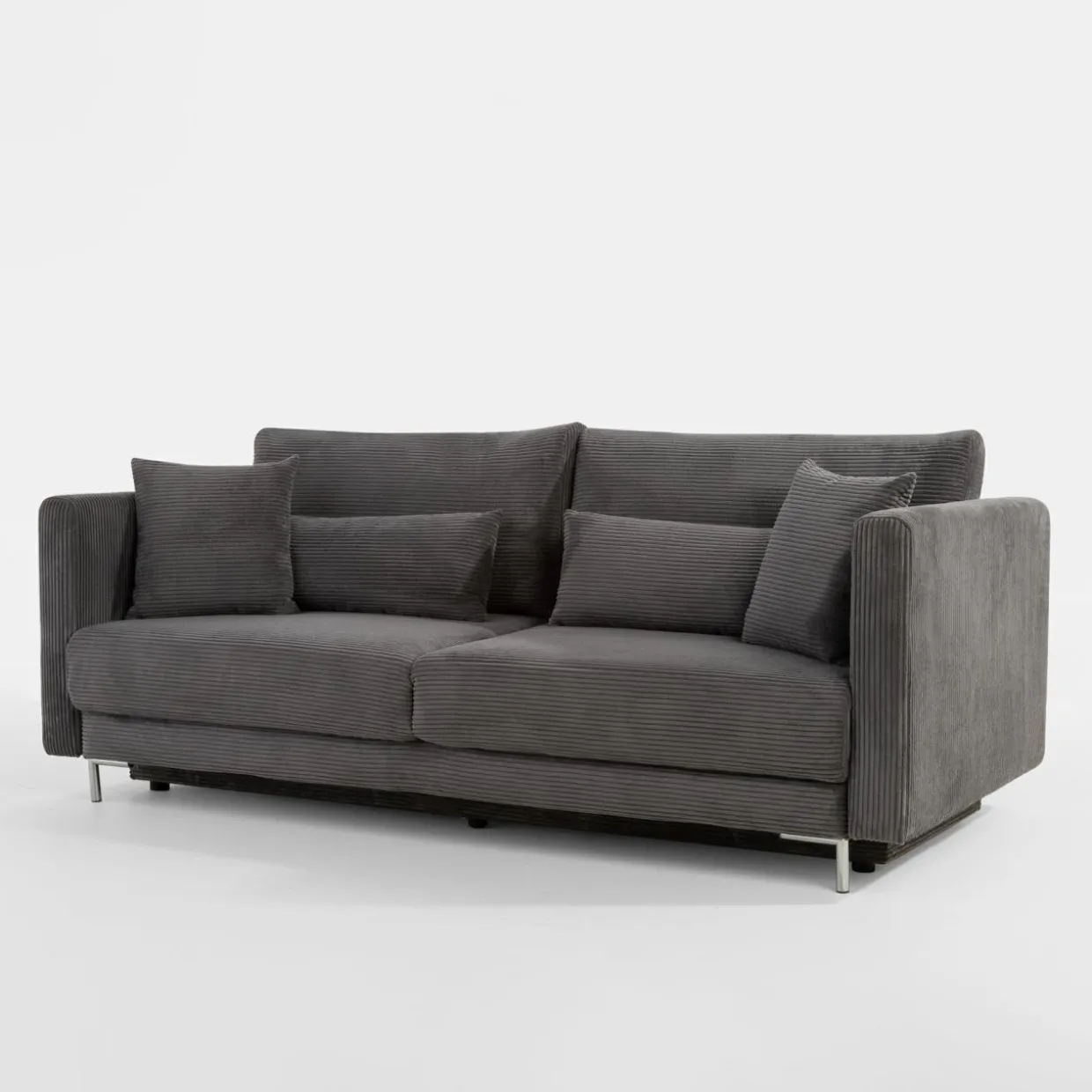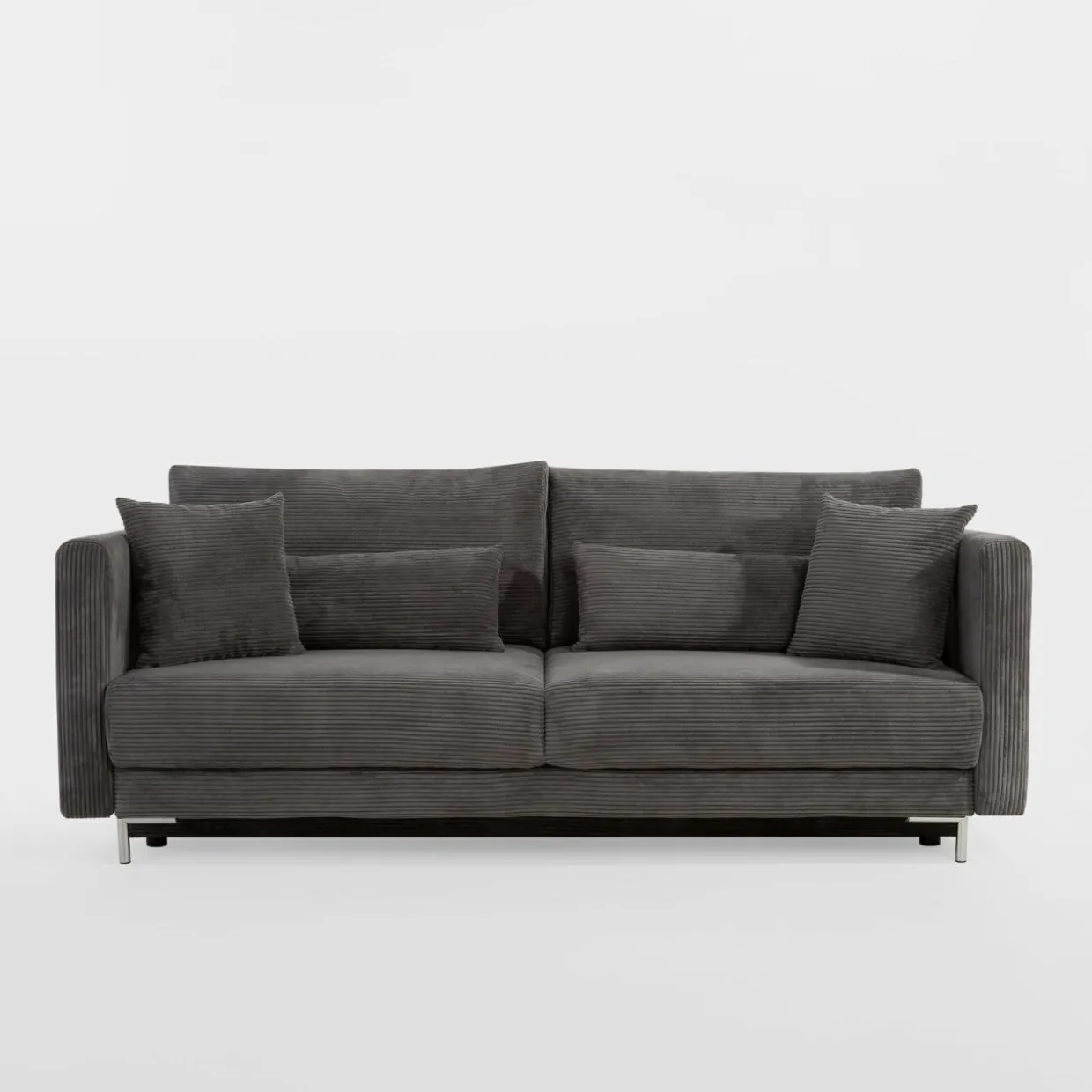 - Przyjemny w dotyku sztruks w ciemnoszarym kolorze wpisze się zarówno w nowoczesne wnętrze, jak i te urządzone w industrialnym klimacie.