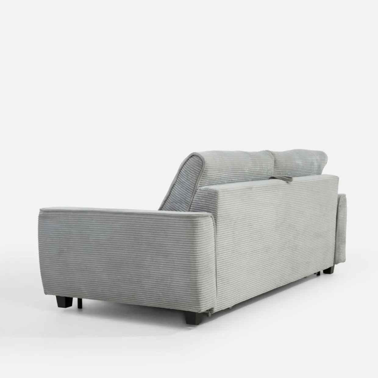 Sofa MONZO 140 łączy w sobie wygodę i praktyczność, oferując funkcję rozkładania do powierzchni spania 140×190 cm. Pokryta miękkim sztruksem w subtelnym, szarym odcieniu, wprowadza do wnętrza ciepło i nowoczesny design. Wyposażona w włoski stelaż, zapewnia komfort użytkowania.
