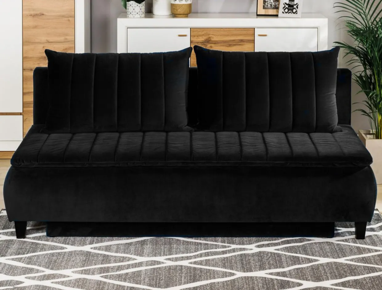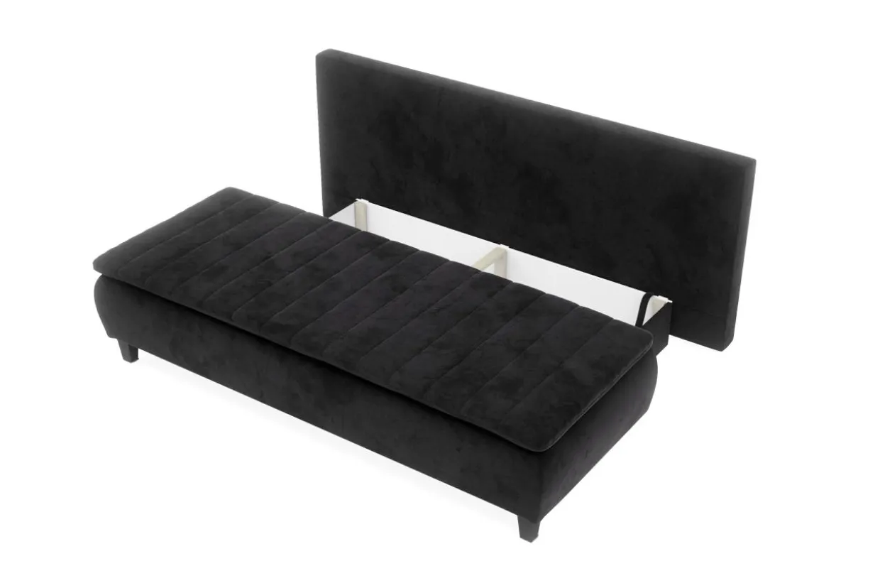Schowek znajduje się pod siedziskiem, dzięki temu pościel możesz wyciągnąć w trakcie rozkładania łóżka.