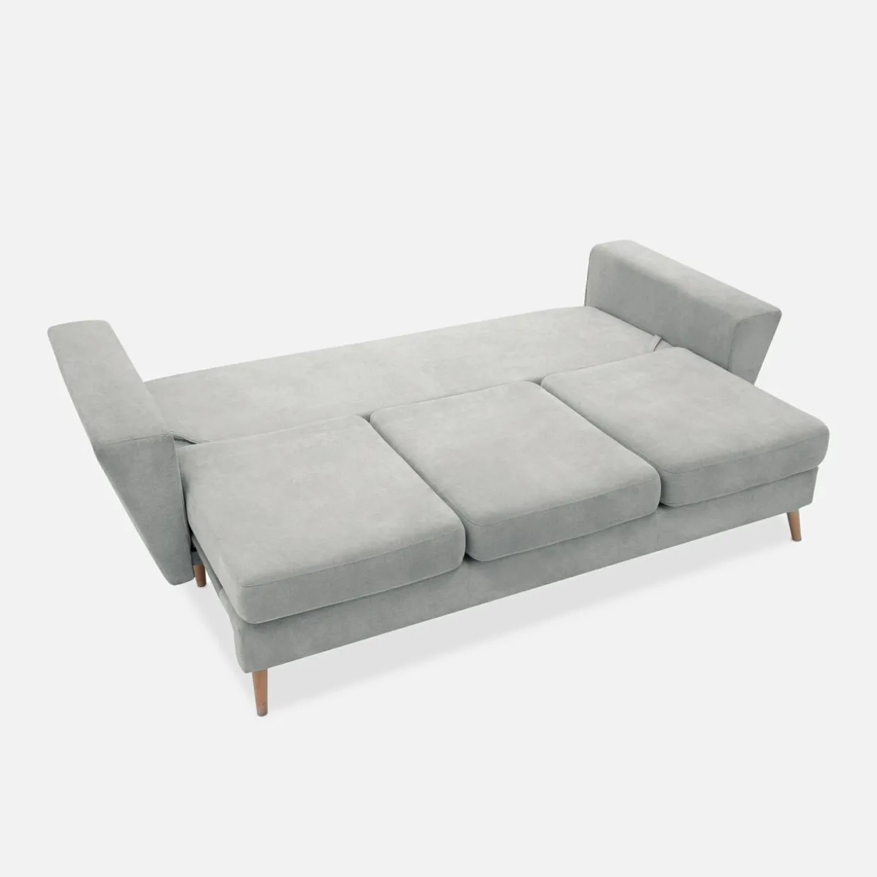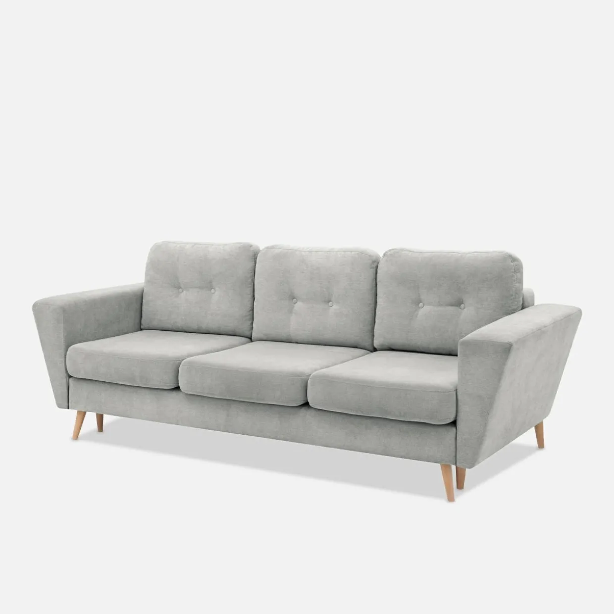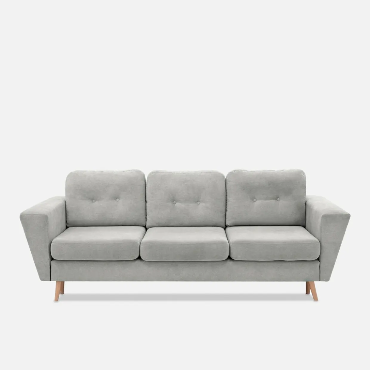 Sofa VEROLI wyróżnia się eleganckim designem i smukłą formą. Zaokrąglony kształt poduszek, opływowa linia podłokietników oraz wysokie, drewniane nóżki sprawiają, że będzie sofa prezentuje się lekko i zachęca do odpoczynku.