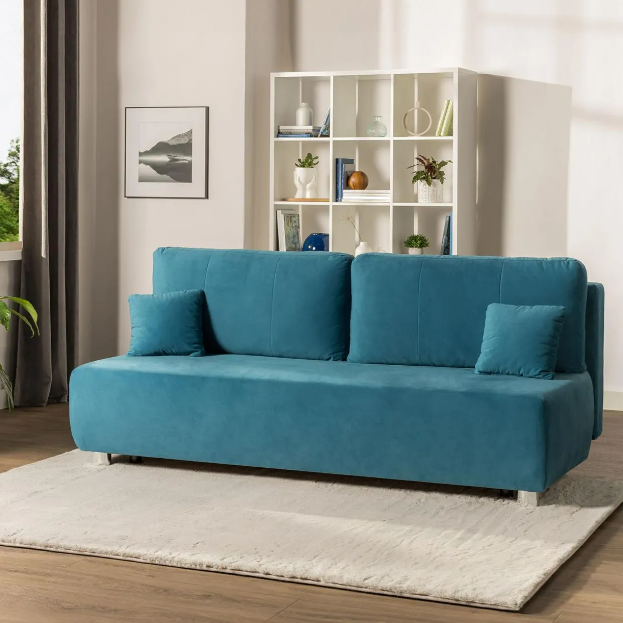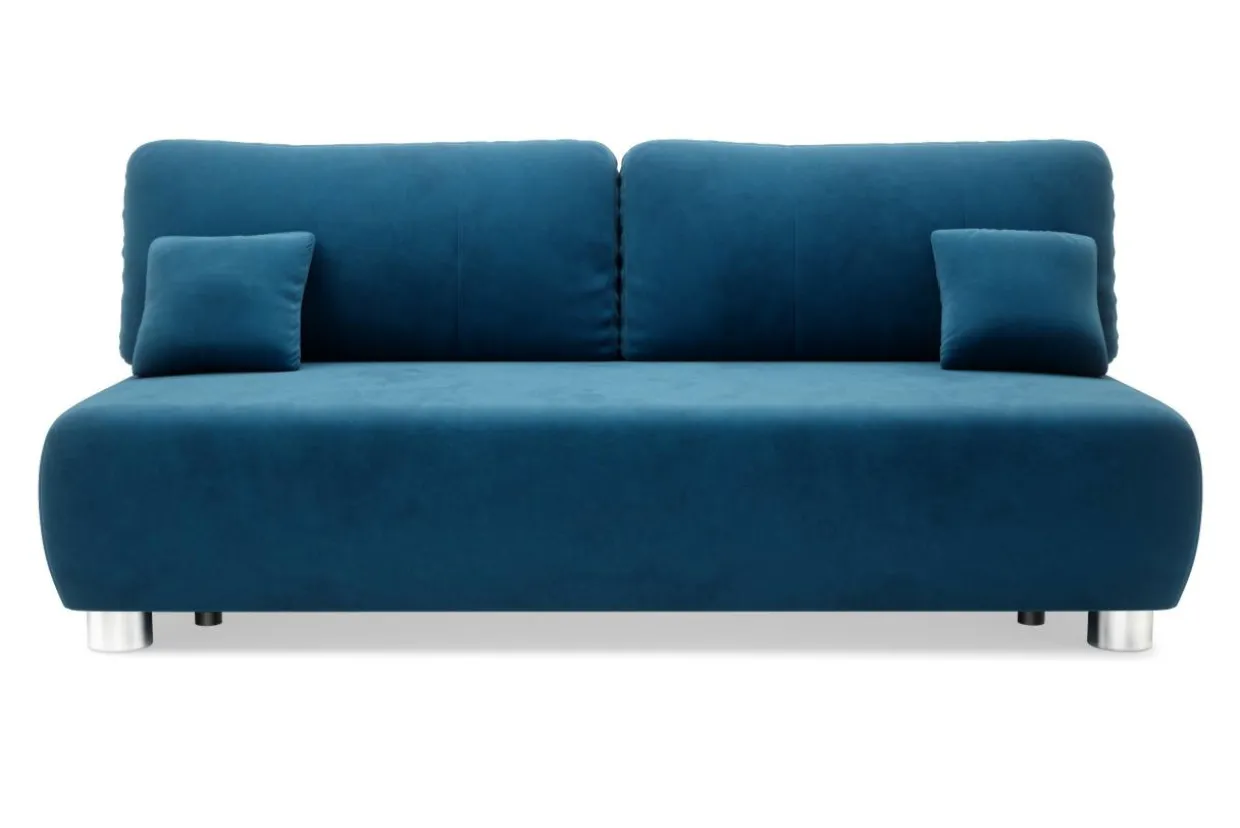 Sofa jest tapicerowana miękką i miłą w dotyku tkaniną welurową SWING w modnym odcieniu niebieskiego.