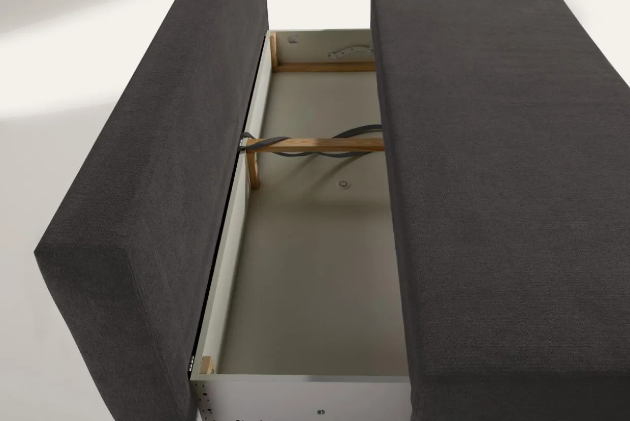 - W pojemniku pod siedziskiem przechowasz pościel i inne domowe tekstylia. Dostęp do niego uzyskasz podczas rozkładania sofy.