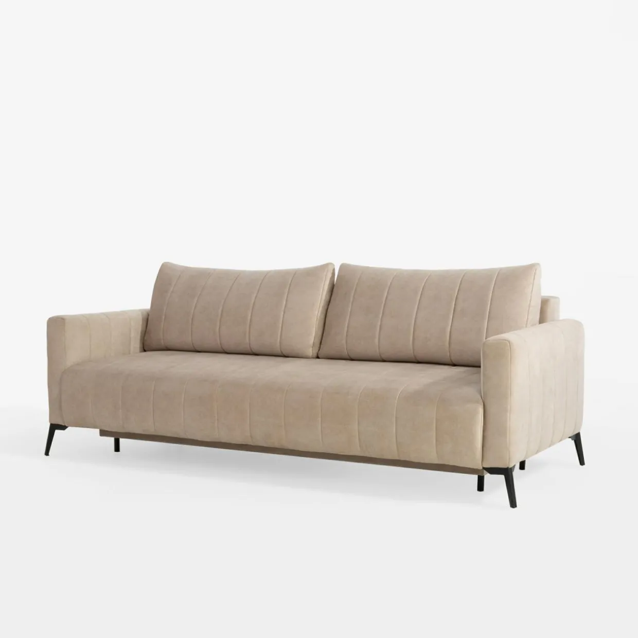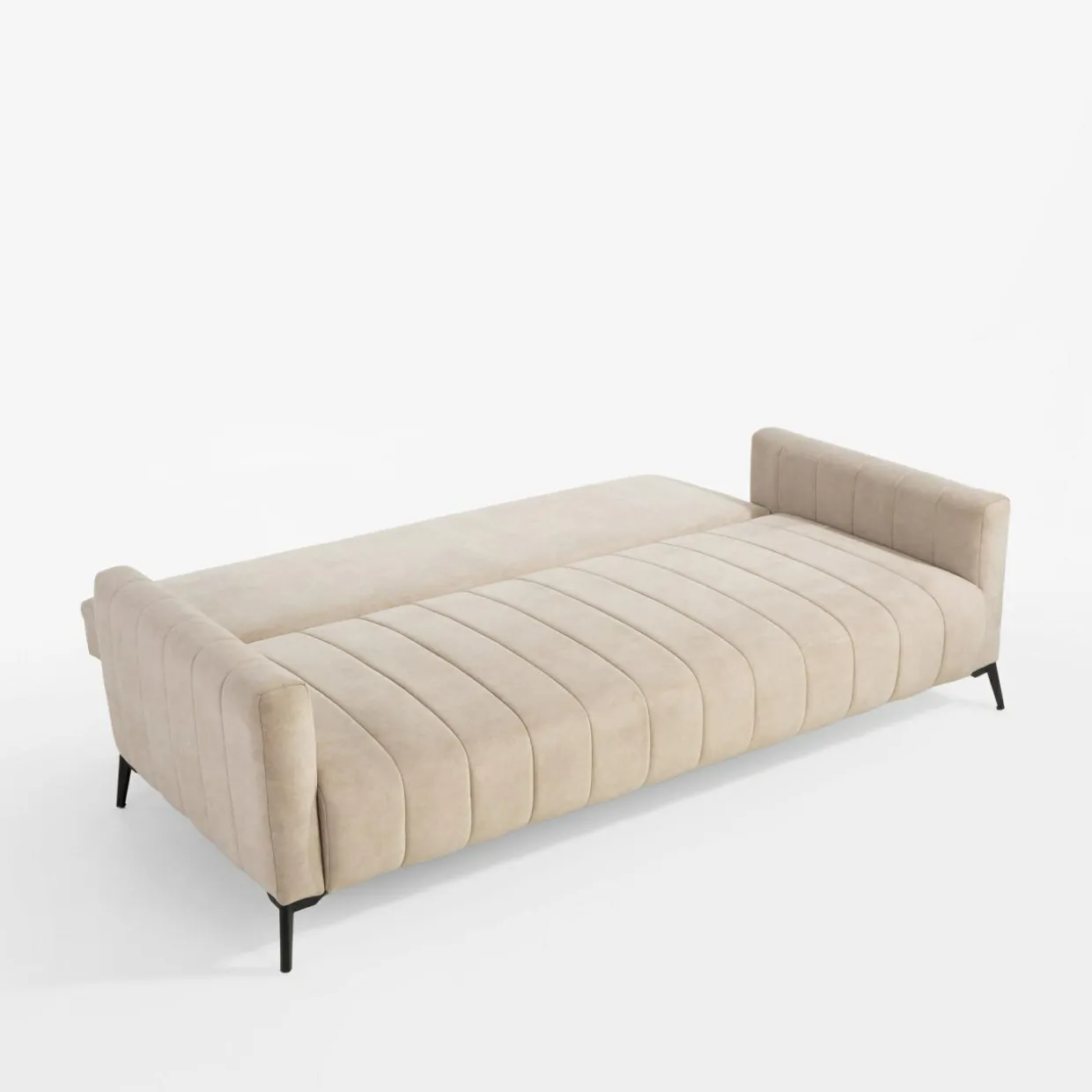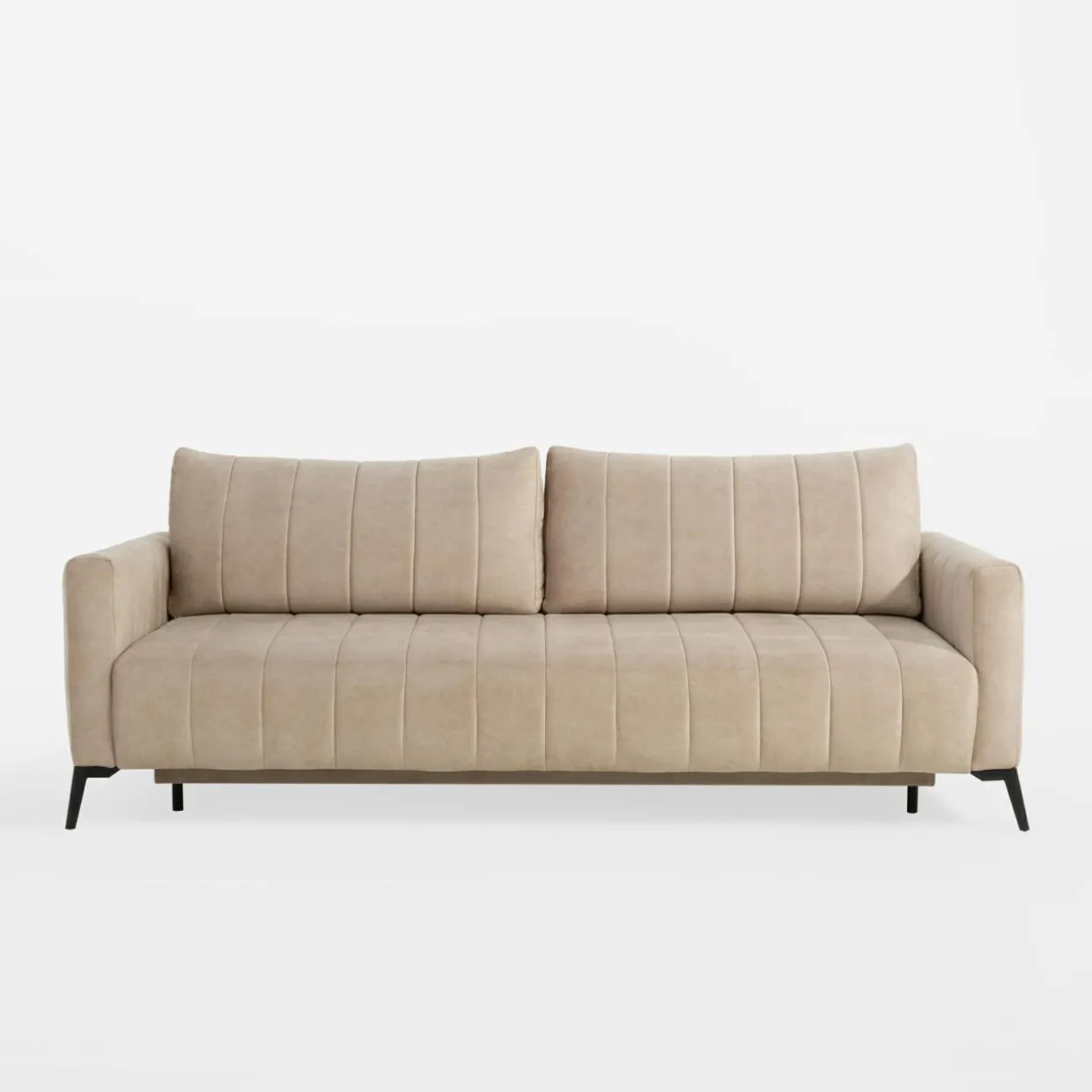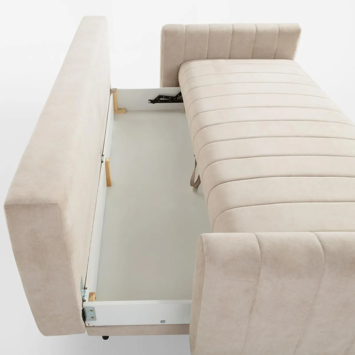 Sofa posiada pojemnik ukryty pod siedziskiem. Możesz go wykorzystać do przechowywania pościeli, koców lub innych tekstyliów.