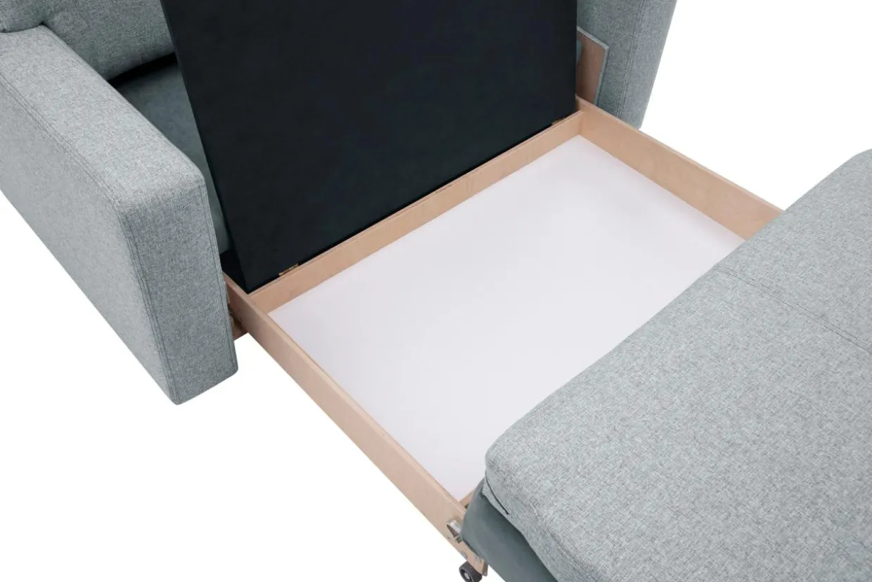 - Niewielki pojemnik na pościel znajdziemy po wysunięciu siedziska do przodu.