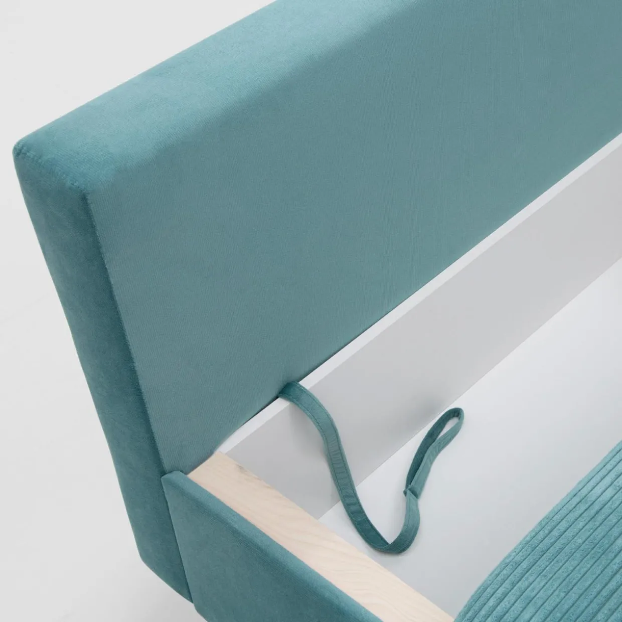 - Dodatkową poduszkę i kołdrę schowasz do pojemnika na pościel umieszczonego pod siedziskiem.