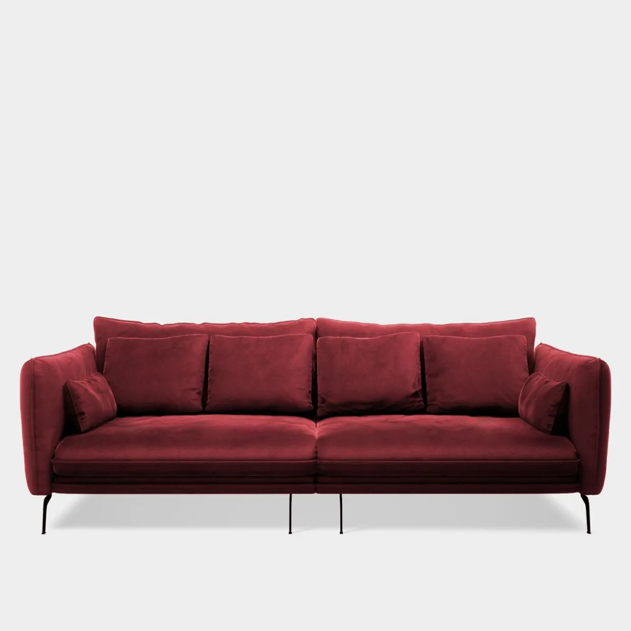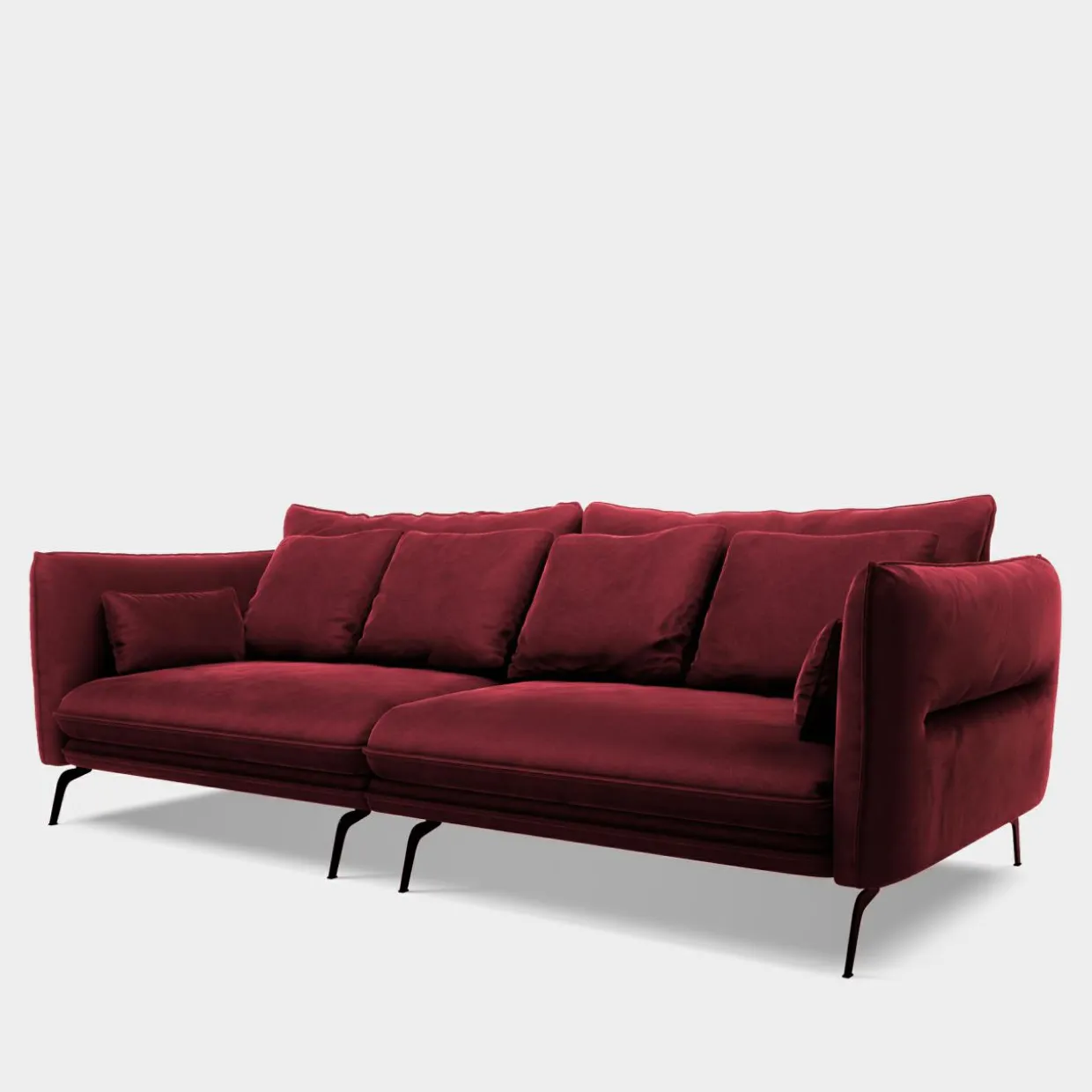 Mebel świetnie zaprezentuje w nowoczesnych aranżacjach – w połączeniu z surowymi bryłami pozostałych elementów umeblowania, wykończeniem na wysoki połysk i monochromatycznymi dekoracjami. Sofa VOCAL doskonale wypadnie również w stylizacji retro, uzupełniona o bogato zdobione poduszki i w towarzystwie złotych dodatków dekoracyjnych. Jej wąskie podłokietniki oraz wysokie nóżki nadają wrażenia lekkości, a tapicerka w odcieniu czerwieni przykuwa wzrok. Tak wyrazisty kolor może być punktem wyjściowym do stworzenia całej aranżacji.