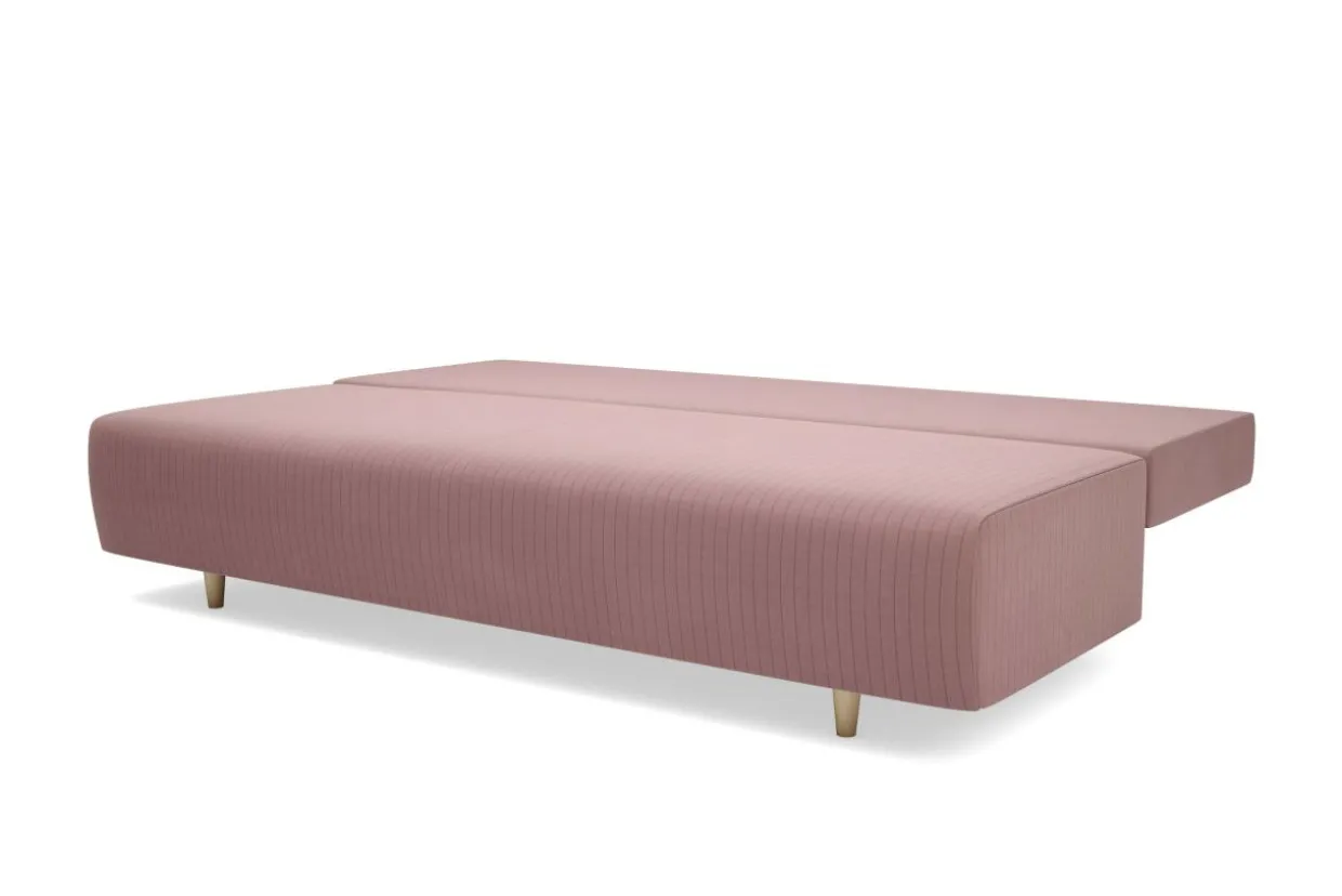 - Sofa ZOJA jest wykończona obiciem z przyjemnej w dotyku, miękkiej i wytrzymałej tkaniny welurowej JASMINE w jasnoróżowym kolorze;