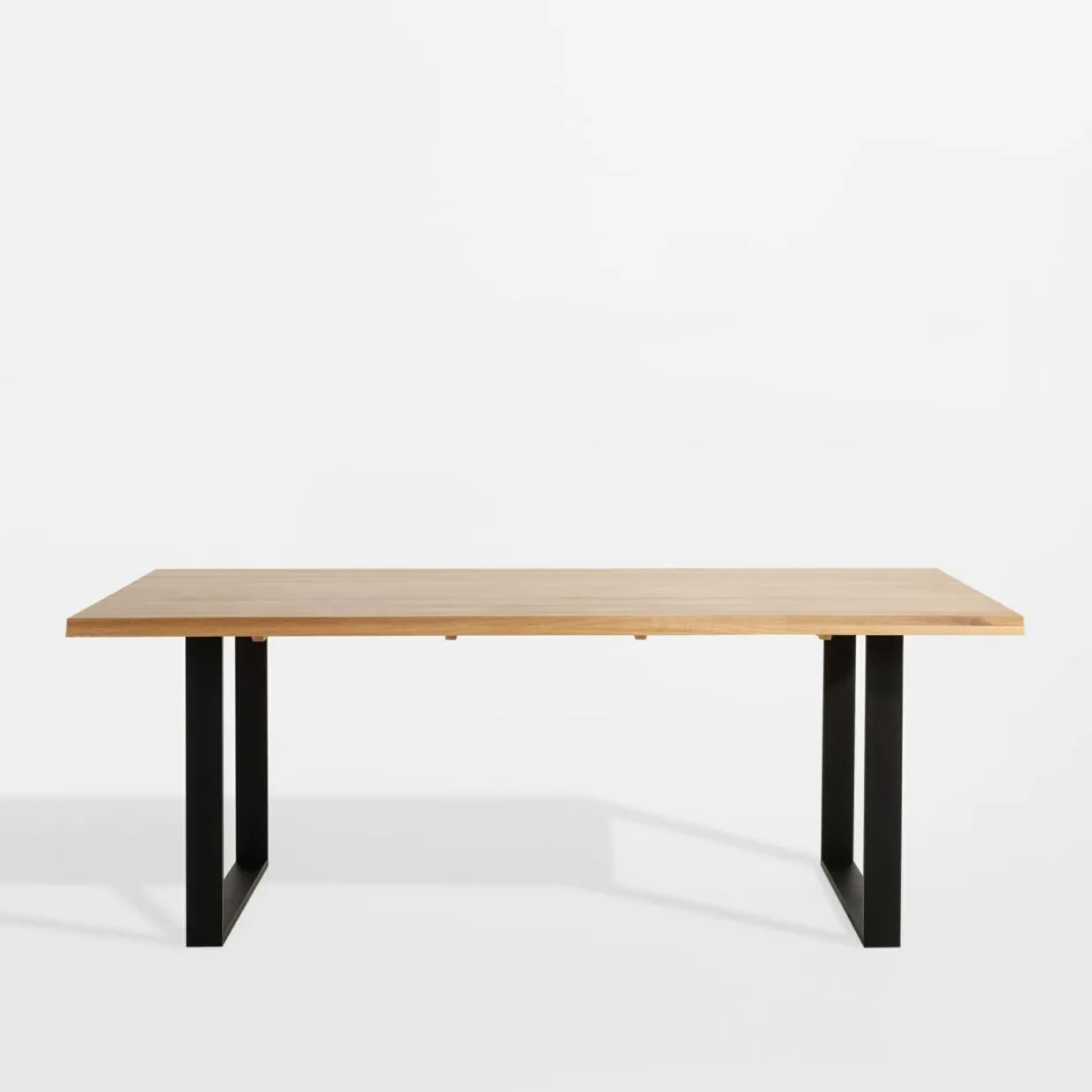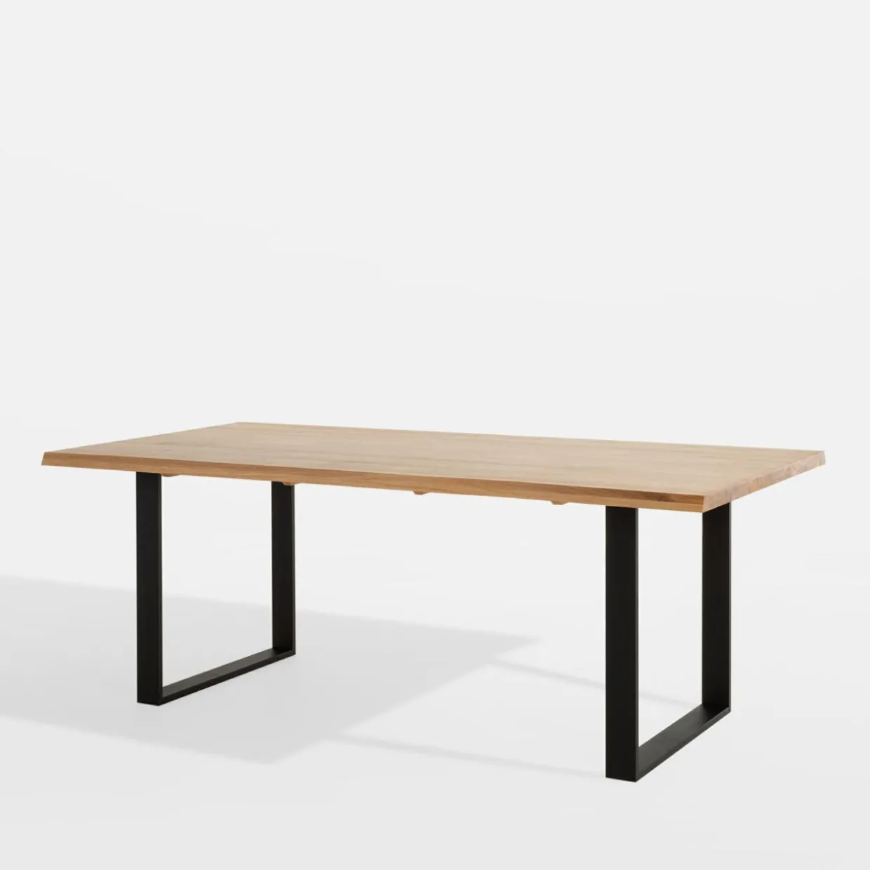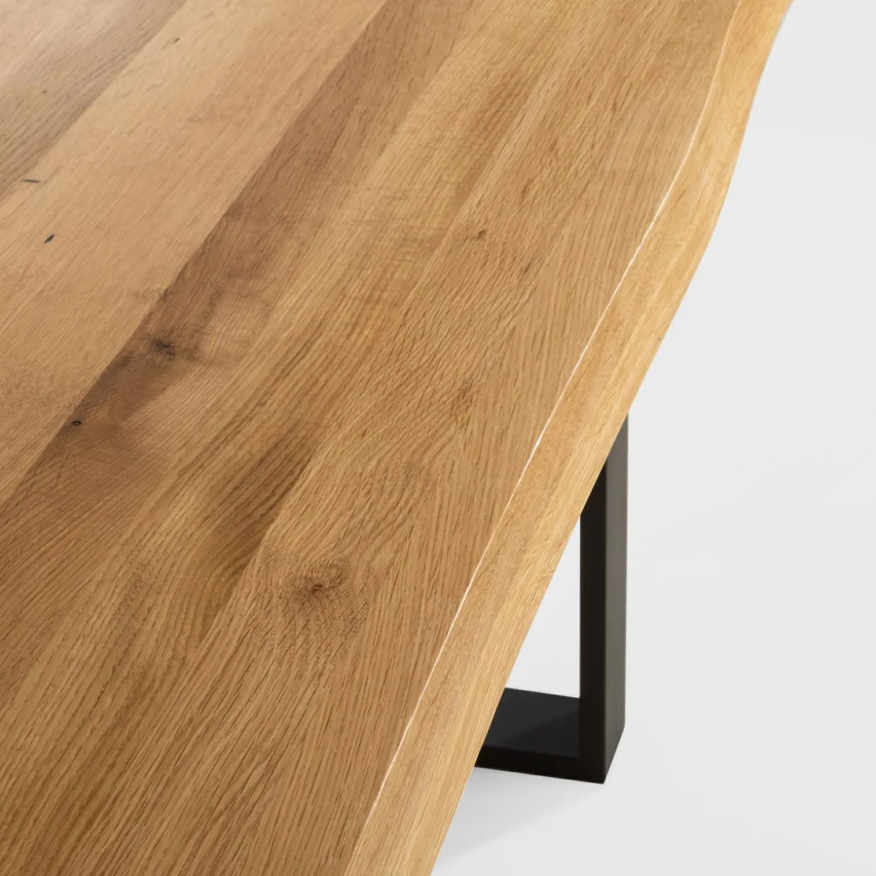 Szukasz stołu do jadalni w industrialnym stylu? Stół ZAID z blatem z litego drewna dębowego dopełni przestrzeń z naturalnych surowców i metalowych elementów.