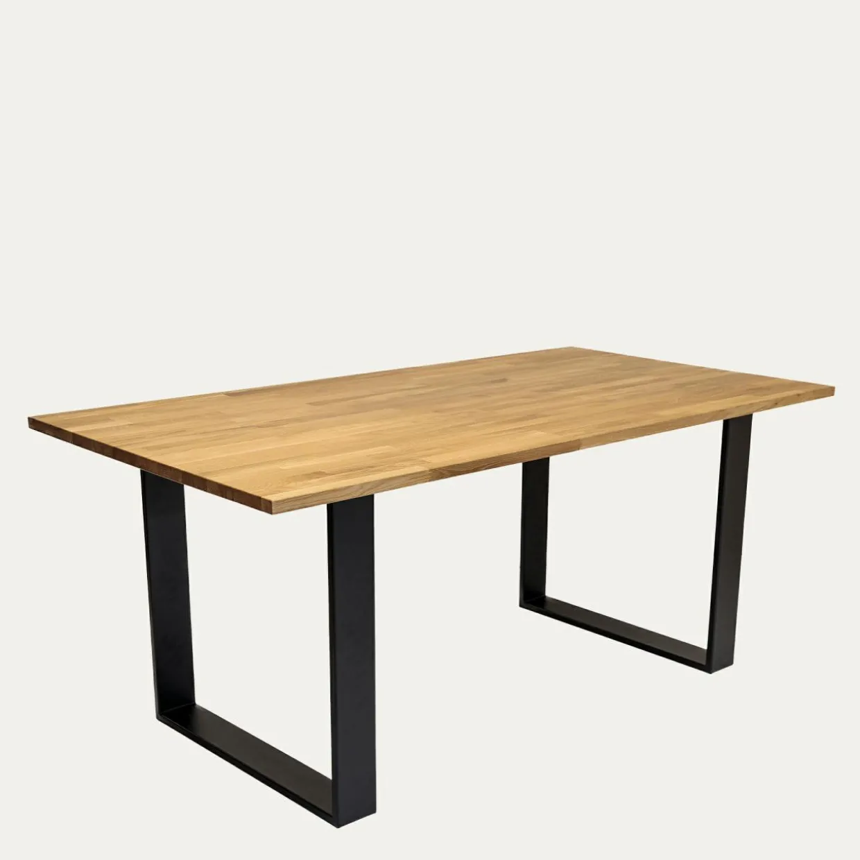 - Wyraźna faktura drewna w połączeniu ze stalowymi nogami w kolorze czarnym sprawia, że stół odnajdzie się w industrialnych jadalniach i pokojach dziennych.