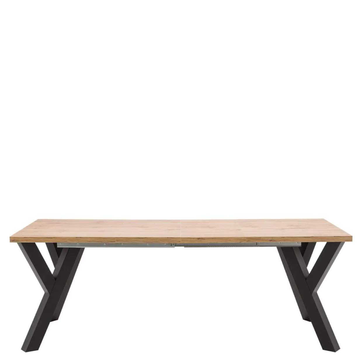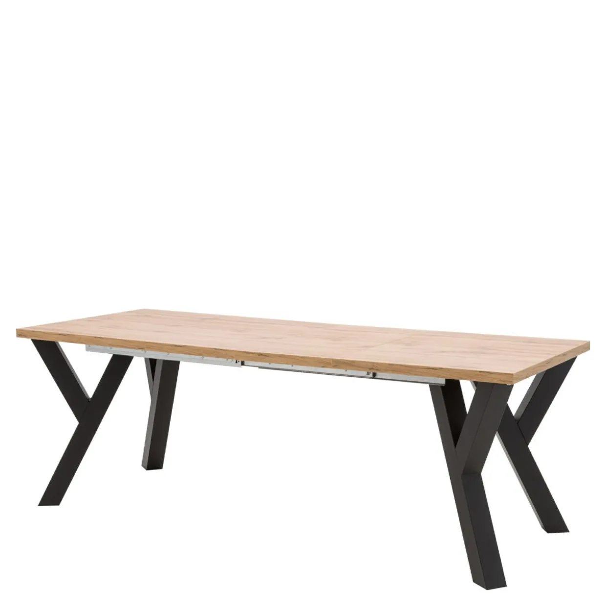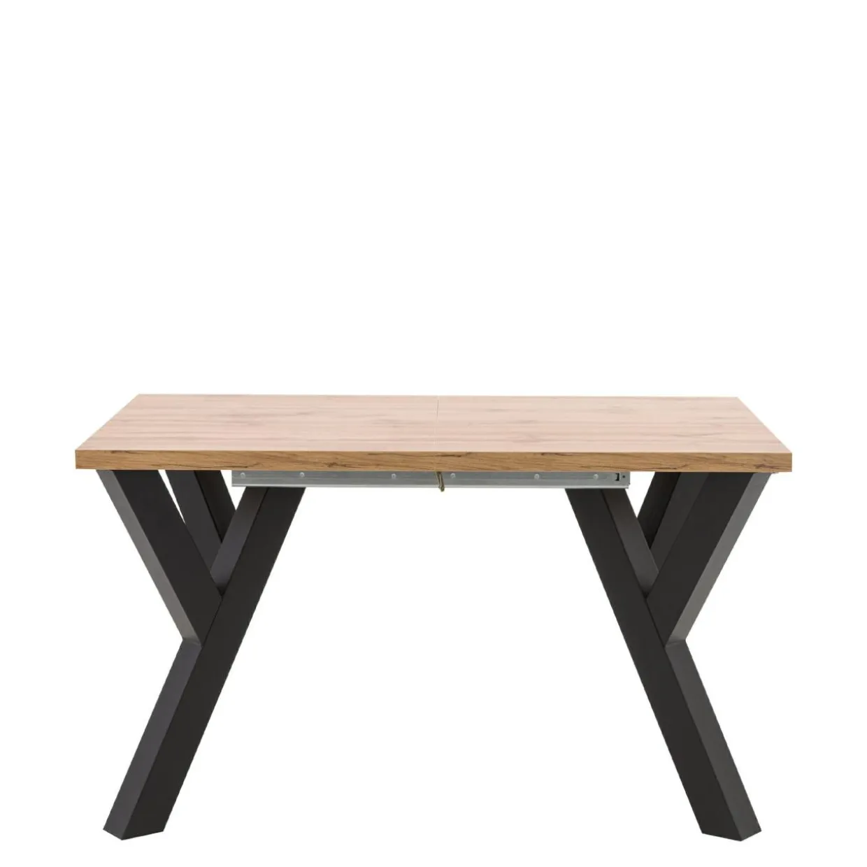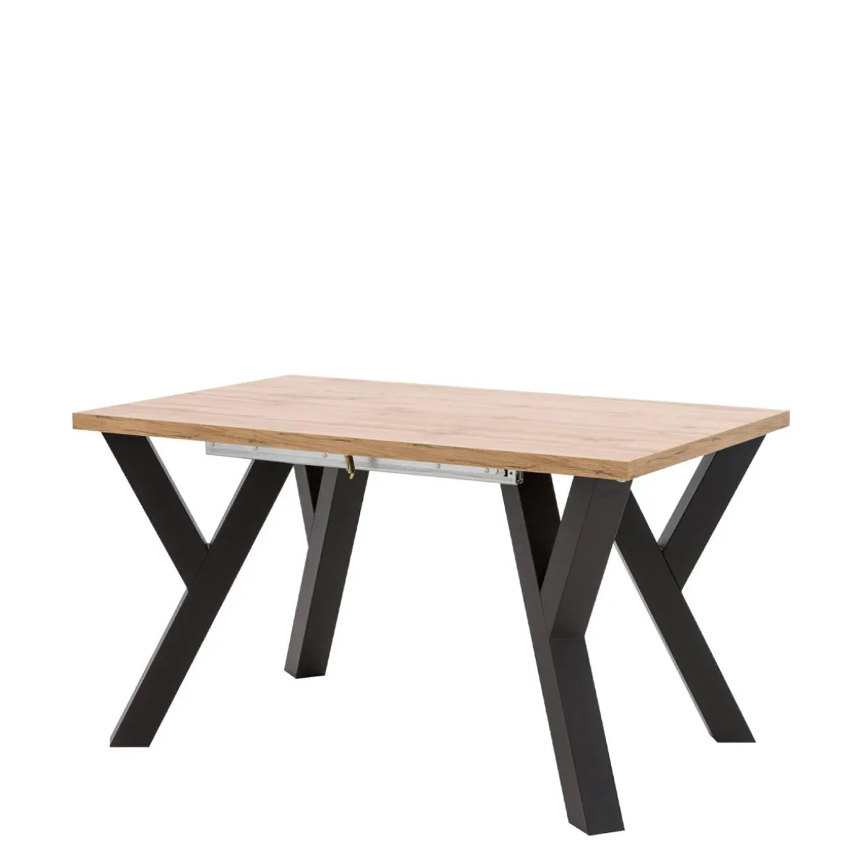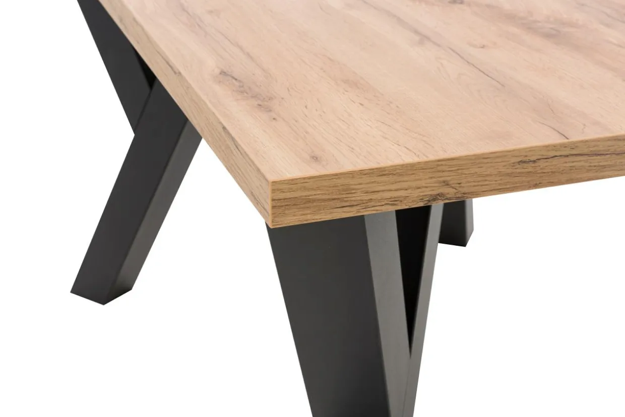 Stół pokryto laminatem, imitującym ciekawą strukturę dębu wotan. W połączeniu z czarnymi nogami pozwoli Ci uzyskać surowy efekt.
