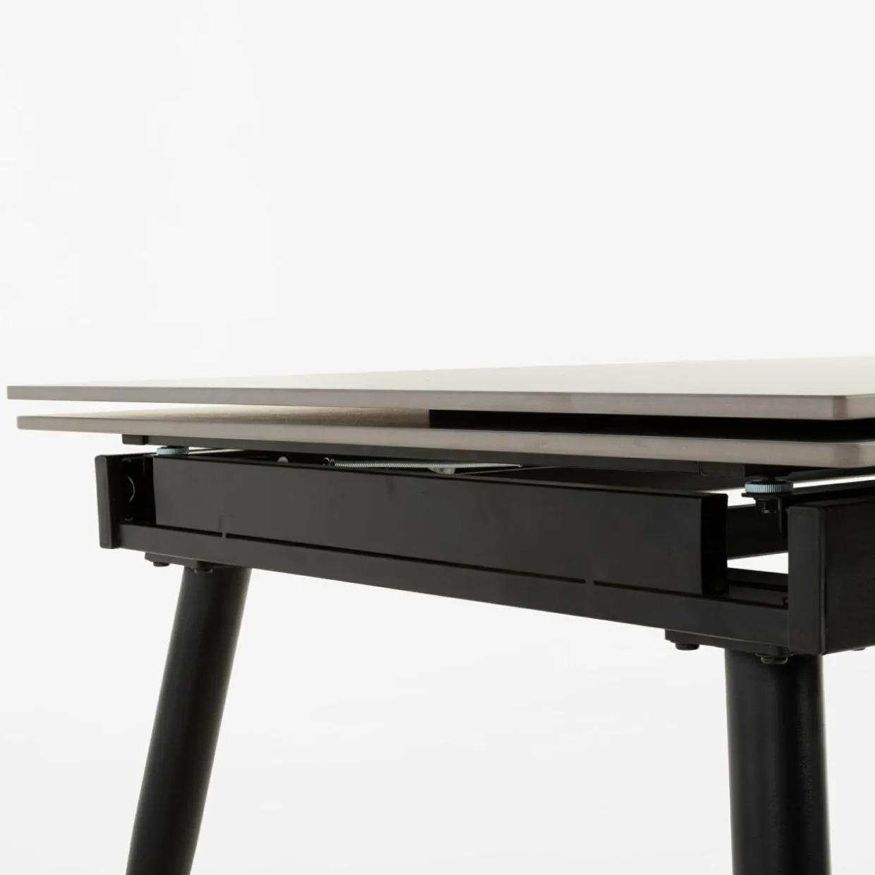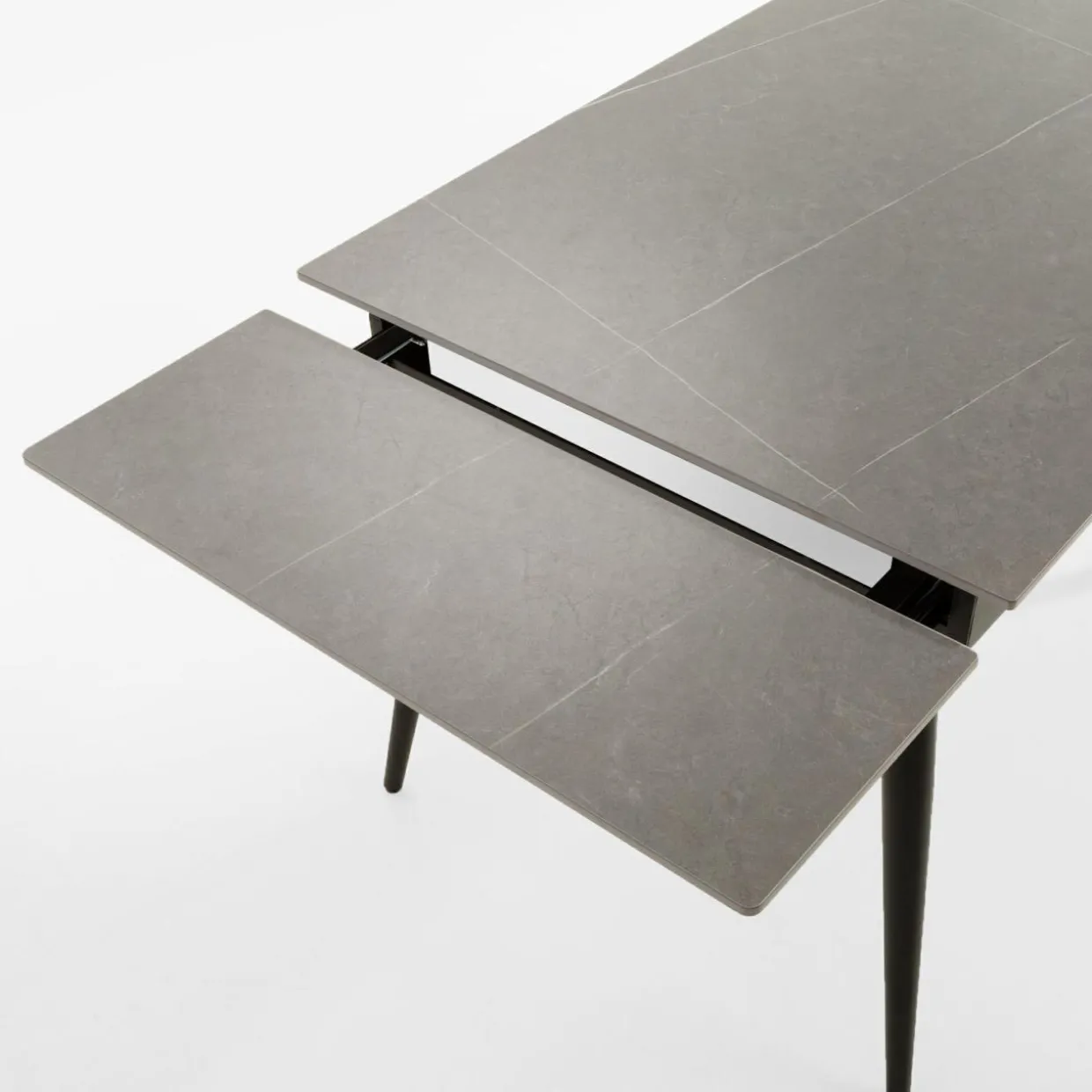 Stół APEKSA wzbogaci jadalnię ciekawym designem – ceramiczny blat został ozdobiony marmurowym wzorem. Połączenie szarości i czerni podkreśli nowoczesne i industrialne wnętrza.