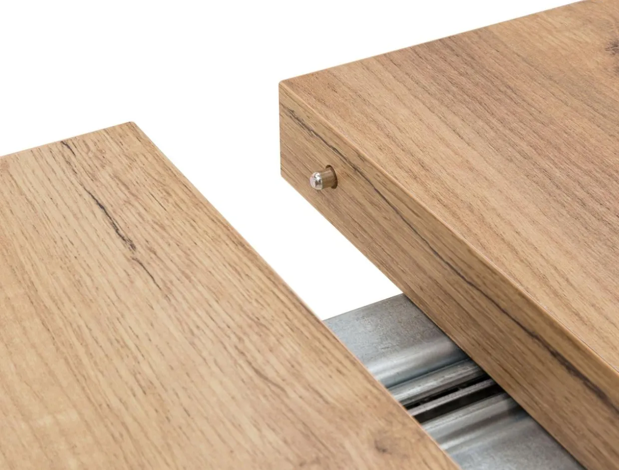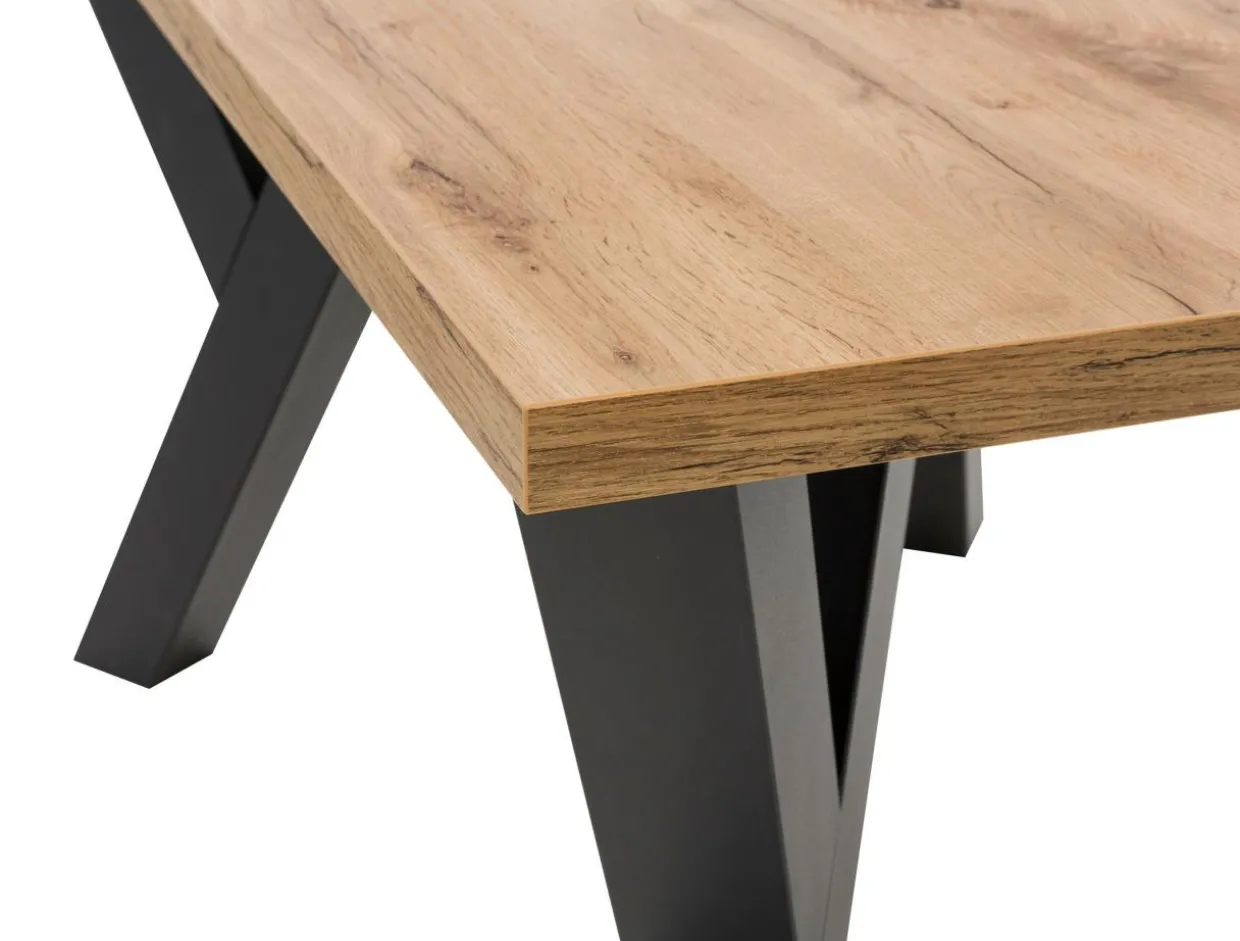 Stół pokryto laminatem, imitującym ciekawą strukturę dębu craft. W połączeniu z czarnymi nogami pozwoli Ci uzyskać surowy efekt.
