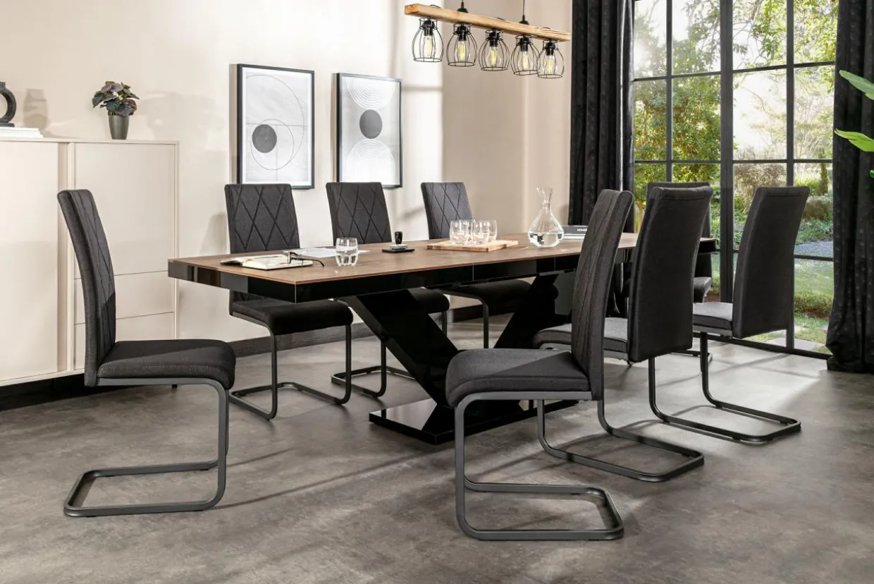 - Stół rozkłada się niezwykle lekko za pomocą prowadnicy synchronicznej – wystarczy rozsunąć jedną część blatu, druga zacznie rozkładać się równolegle.