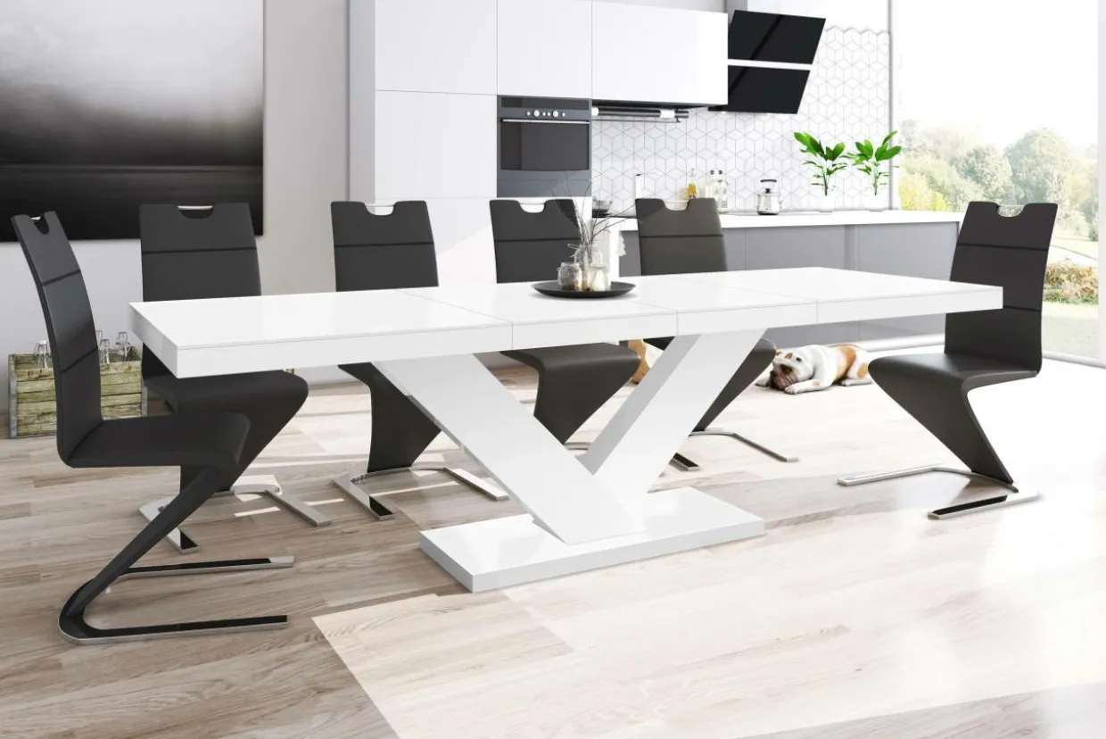 - Stół rozkłada się niezwykle lekko za pomocą prowadnicy synchronicznej – wystarczy rozsunąć jedną część blatu, druga zacznie rozkładać się równolegle.