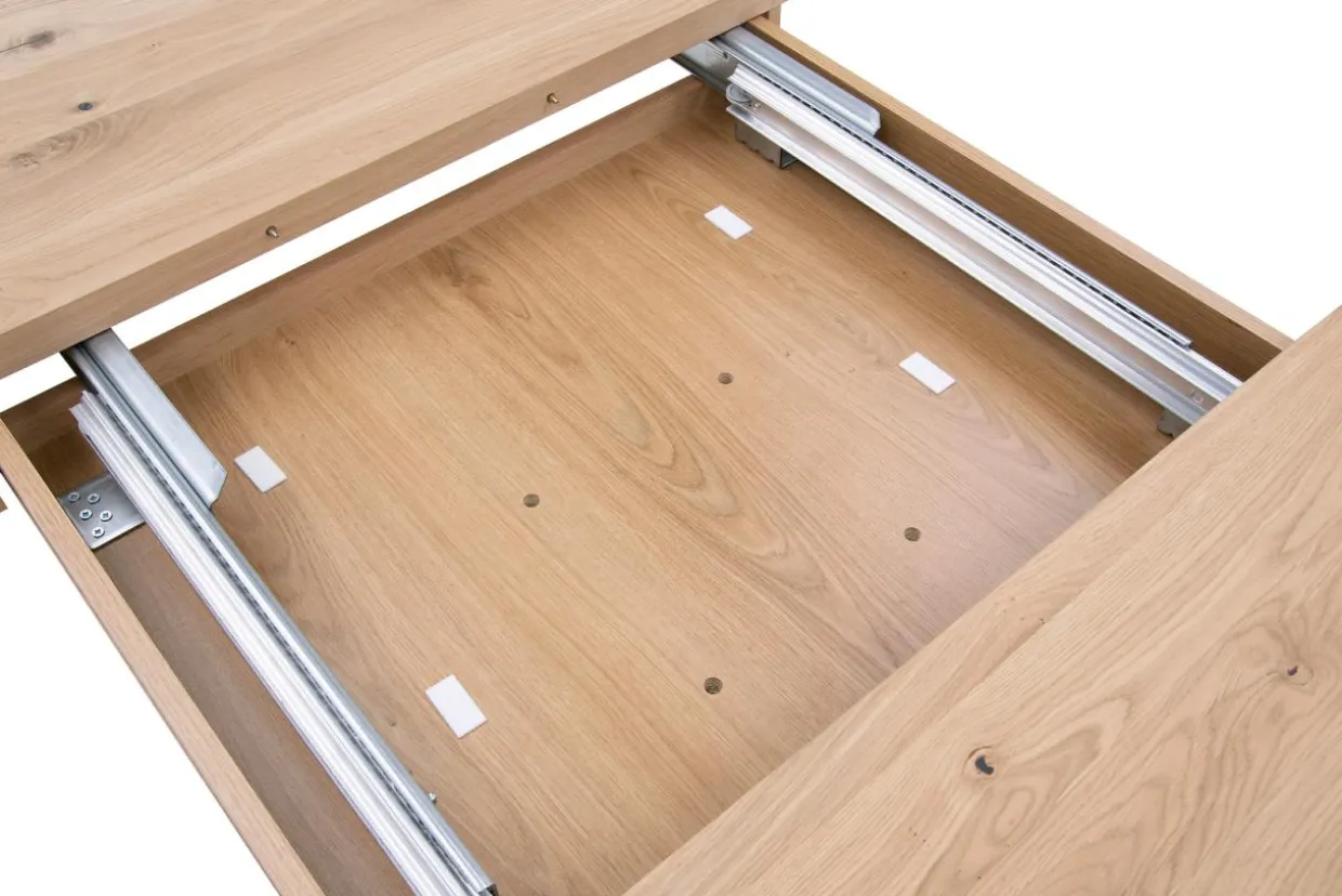 - Blat rozsuwa się przy pomocy prowadnicy z metalu.
