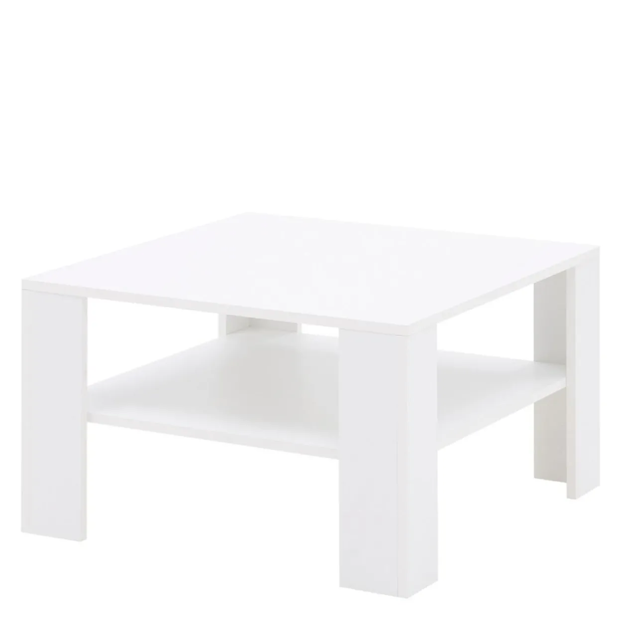 Stolik GALA wykonano z płyty meblowej i wykończono białym laminatem. Wpasuje się w salon, niezależnie od dominującego we wnętrzu koloru.