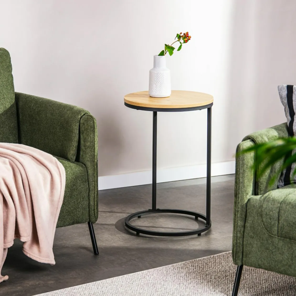 Konstrukcja pozwala dosunąć go do sofy lub fotela.