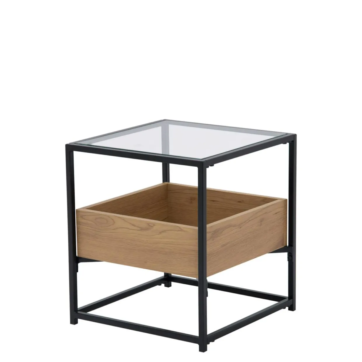 Rama ze stali malowanej proszkowo tworzy stabilną podporę dla półki oraz delikatnego blatu.
