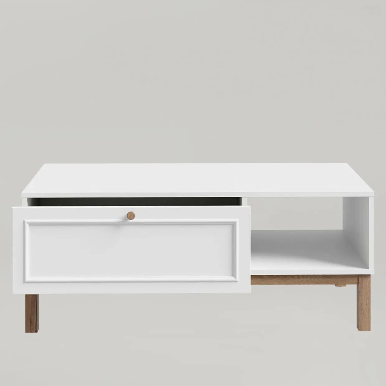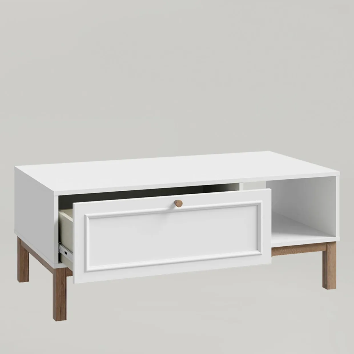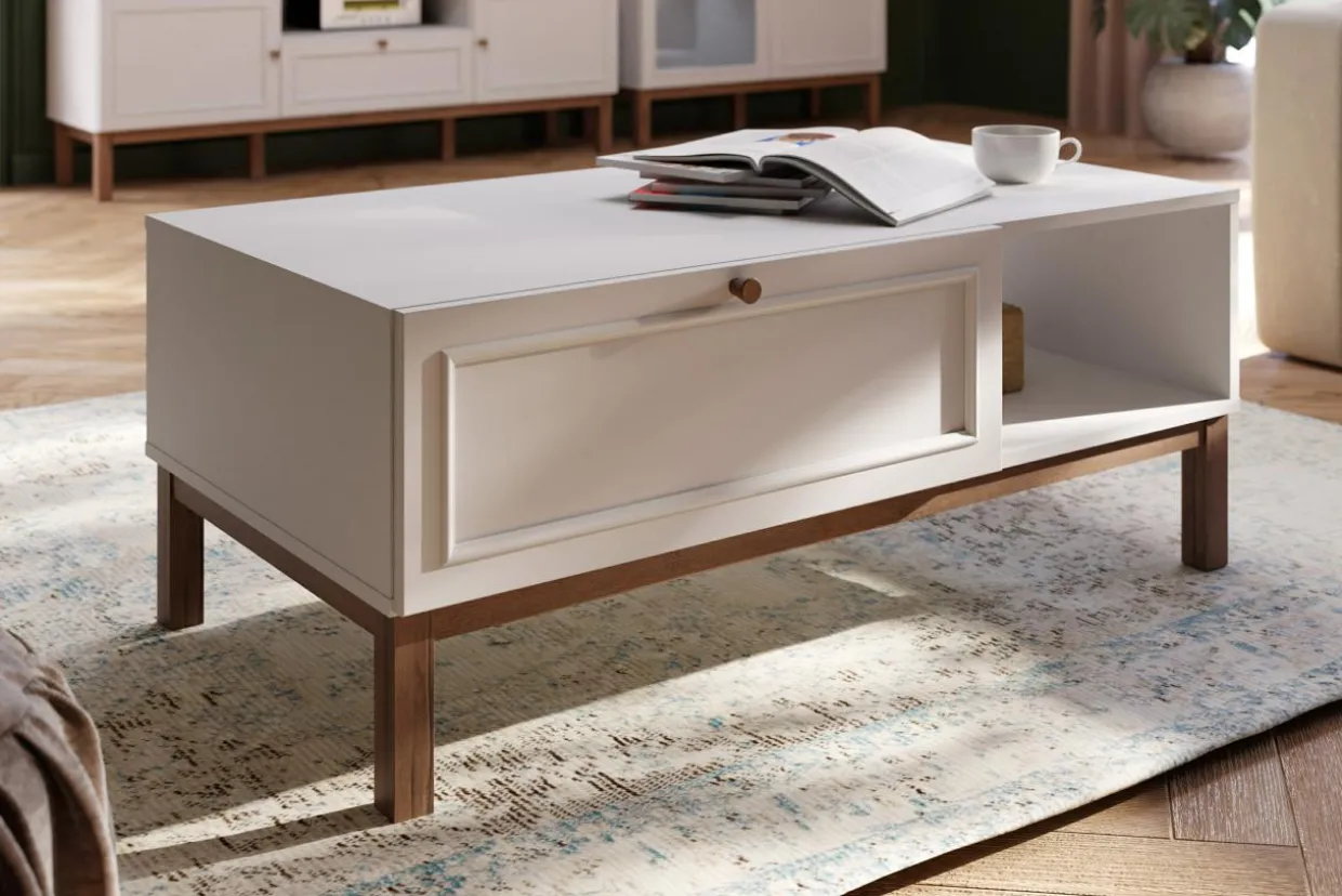 - W szerokiej szufladzie przechowasz dodatki do salonu – podkładki pod kubek, piloty do telewizora czy drobne przekąski.