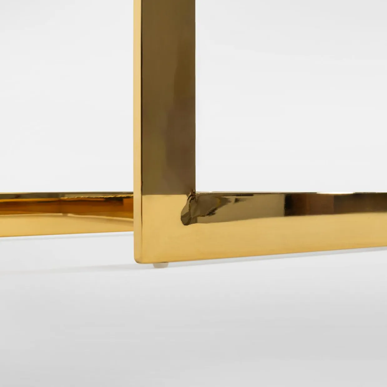 - Połączenie szkła i stali nierdzewnej w złotym kolorze będzie elegancko prezentować się zarówno w nowoczesnej aranżacji, jak i tej w stylu glamour.