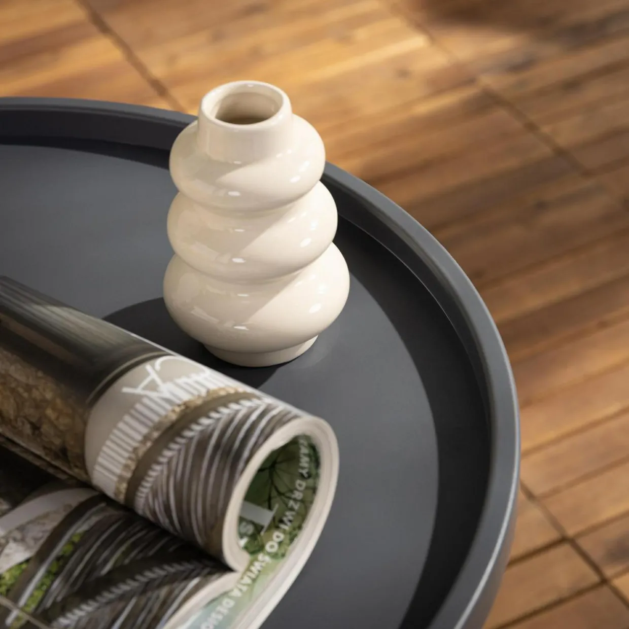Stolik HAPPIANO dostępny jest w 3 kolorach — ciemnoszarym, jasnoszarym i beżowym.