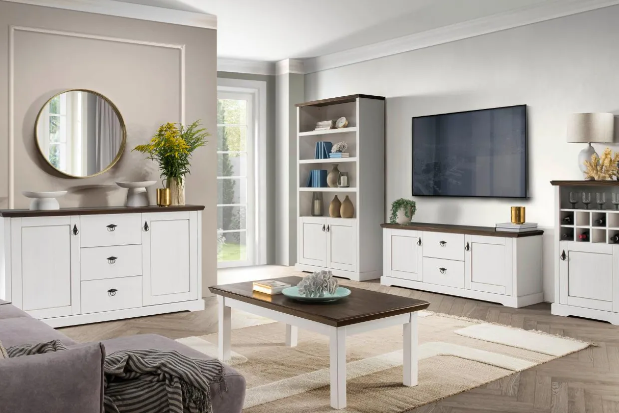 Połączenie odcienia bielonego drewna, metalowych okuć i ciemnych blatów sprawi, że stworzysz ponadczasowe, eleganckie wnętrze w klasycznym stylu.