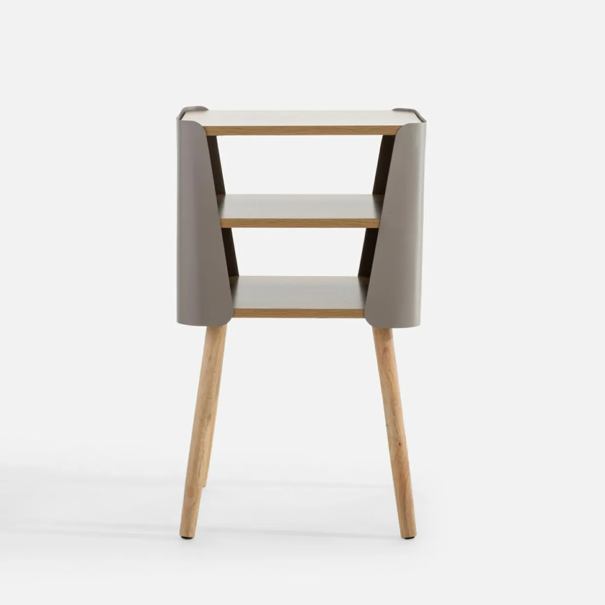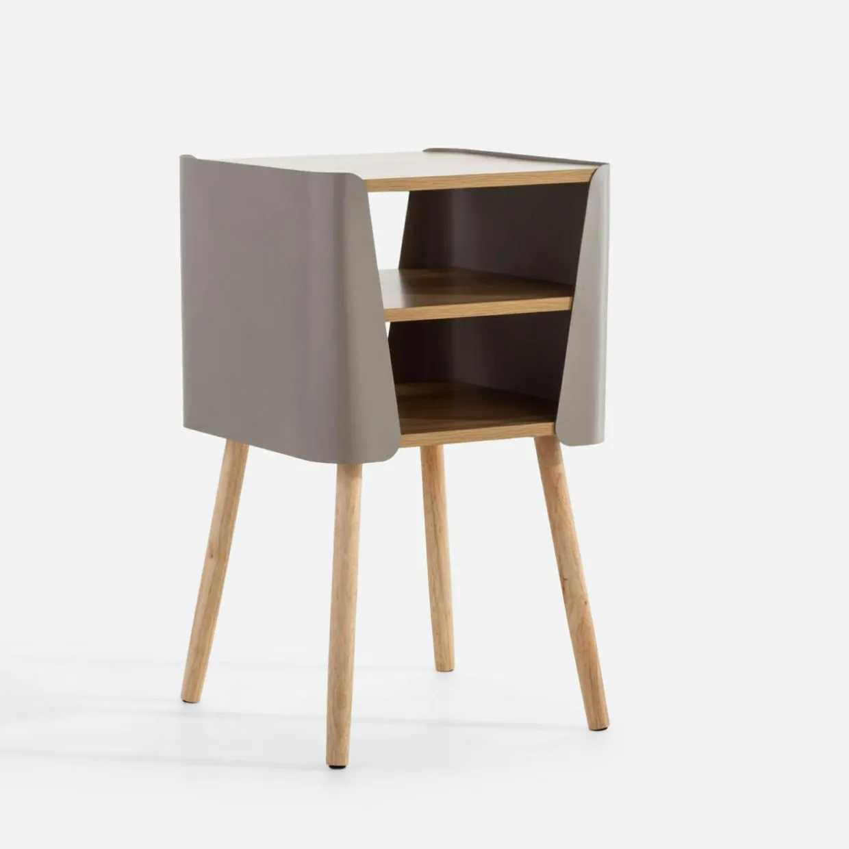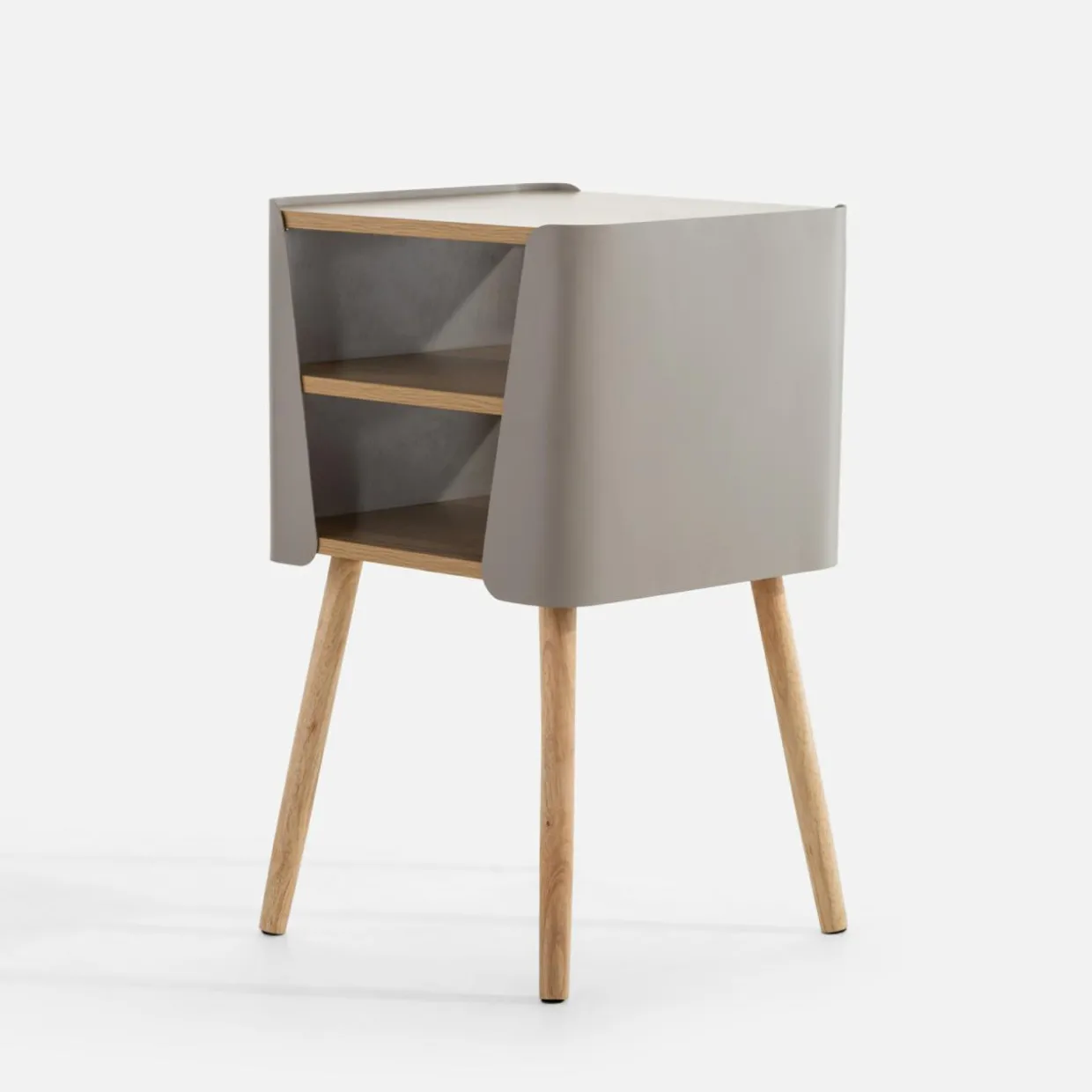 Stolik HANARU sprawdzi się w różnych miejscach – przy fotelu w salonie, ale też jako stolik nocny w sypialni lub pokoju młodzieżowym. Połączenie jasnego drewna z beżowym stelażem podkreśli jasny, nowoczesny charakter wnętrza.