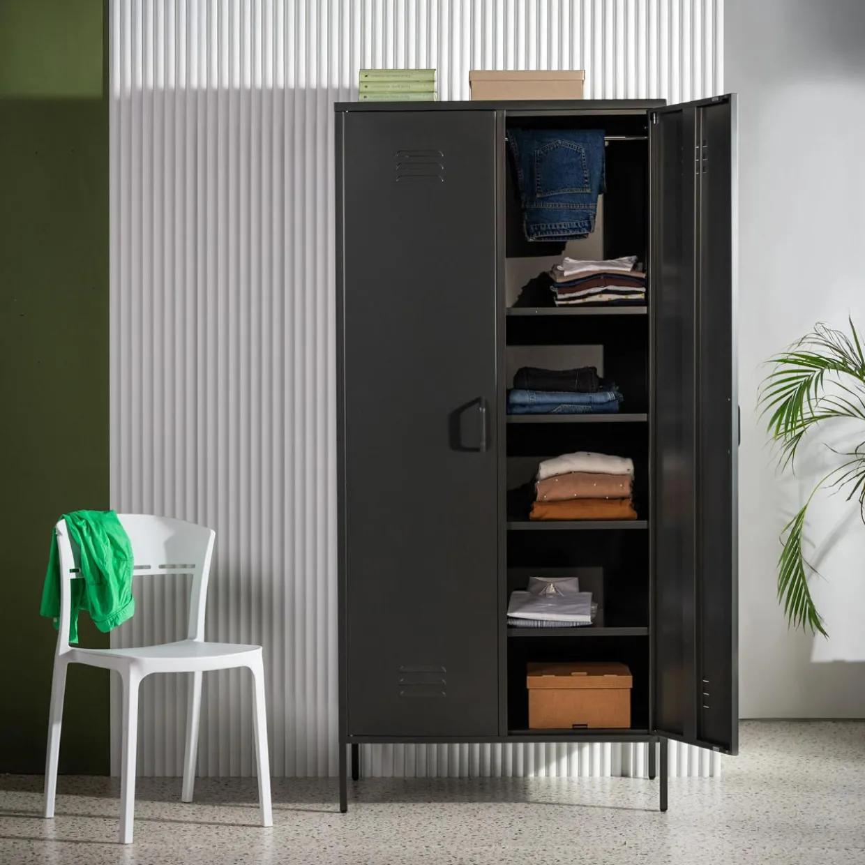 - W środku znajduje się 5 wnęk, każda o obciążeniu do 20 kg, które ułatwią organizację garderoby.