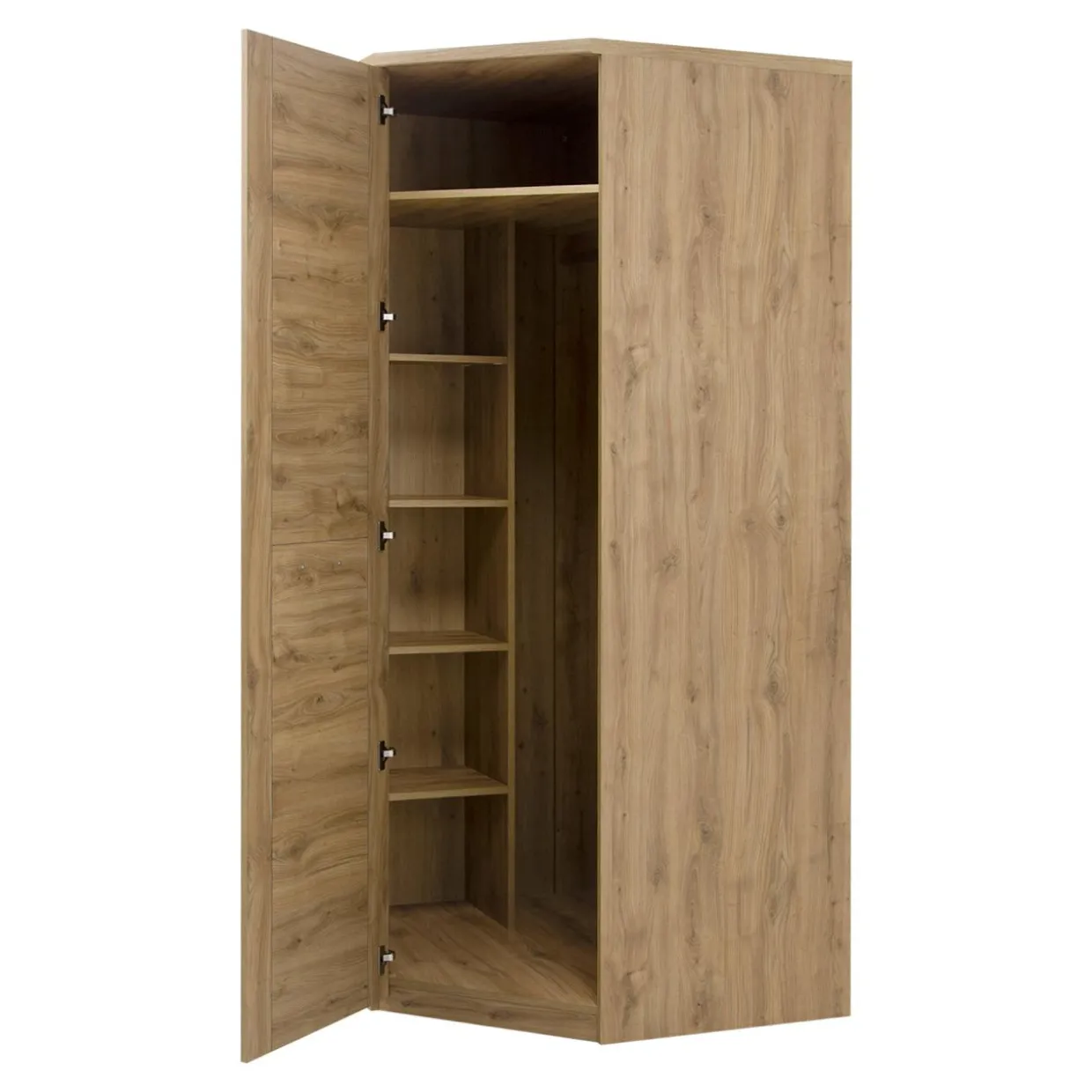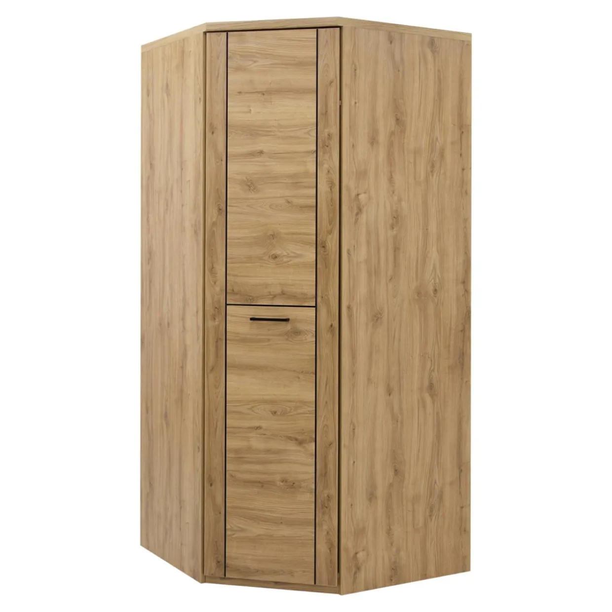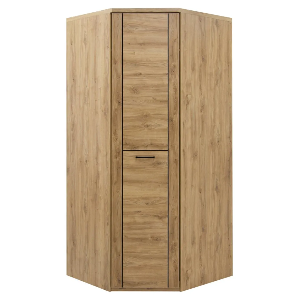 Szafa narożna DOORSET wykonana jest z płyty laminowanej w kolorze jasnego drewna. Możesz ją zestawić z pozostałymi meblami z kolekcji DOORSET.