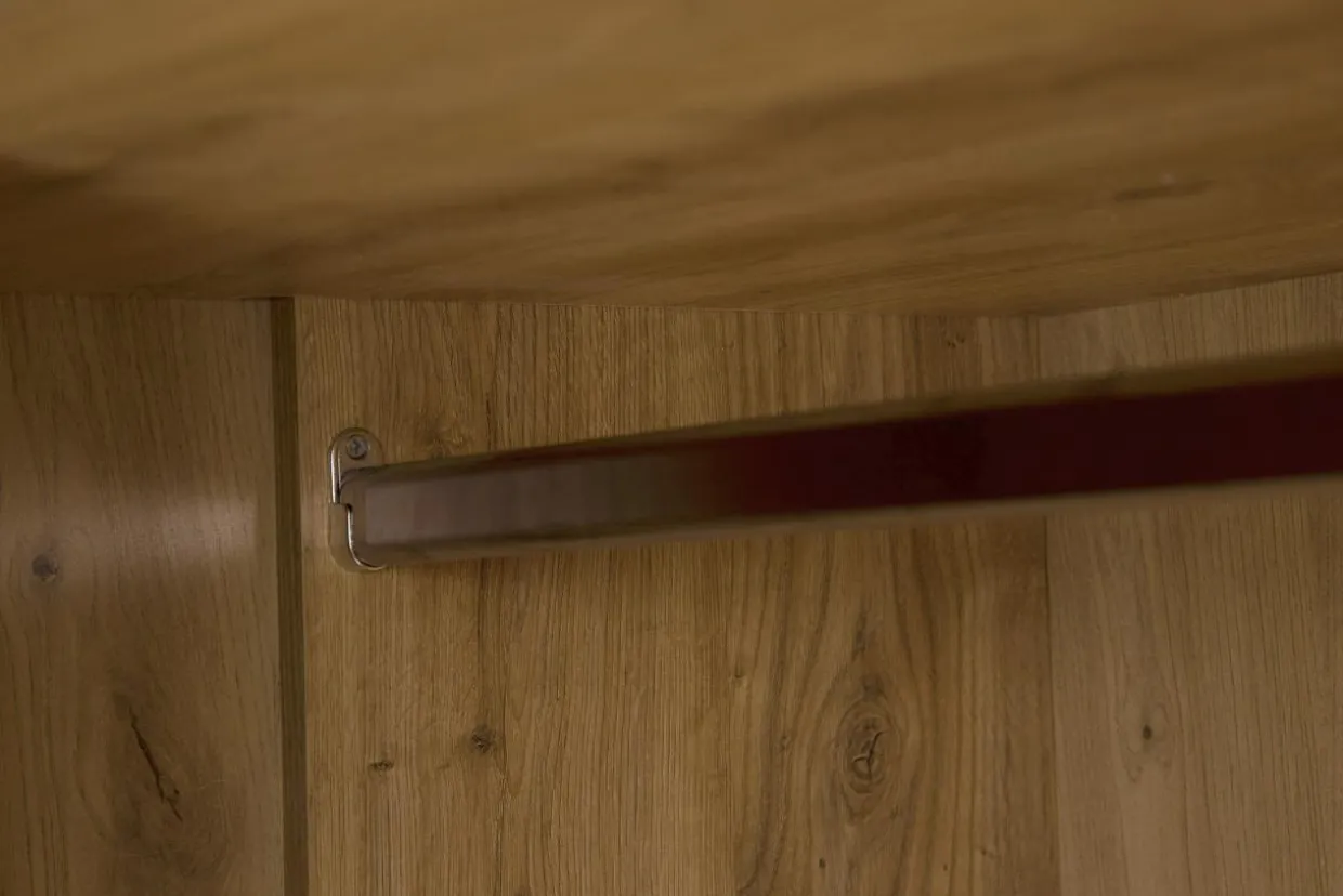 - Z prawej strony znajduje się drążek, na którym powiesisz ubrania wierzchnie, sukienki lub wyprasowane ubrania.