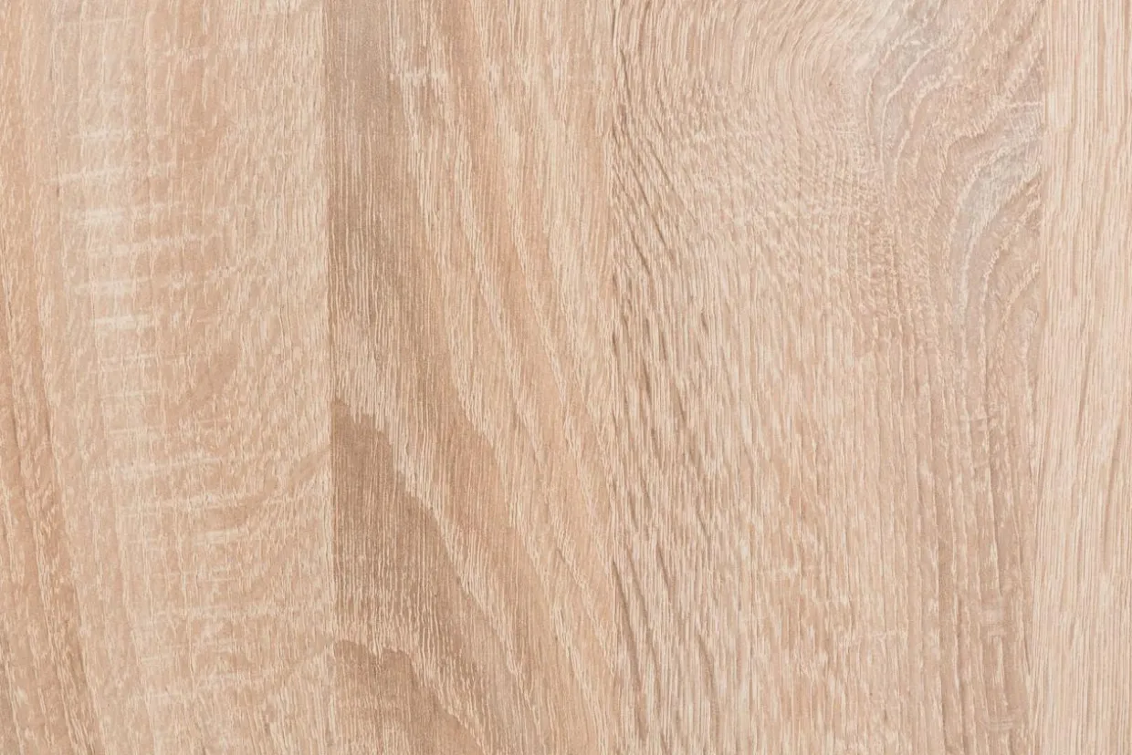 Laminat w jasnym kolorze dębu sonoma dekorem przypominający drewno wprowadza w pomieszczeniu przytulny klimat, a brak tradycyjnych uchwytów sprawia, że mebel łatwiej wkomponować w dowolną aranżację.