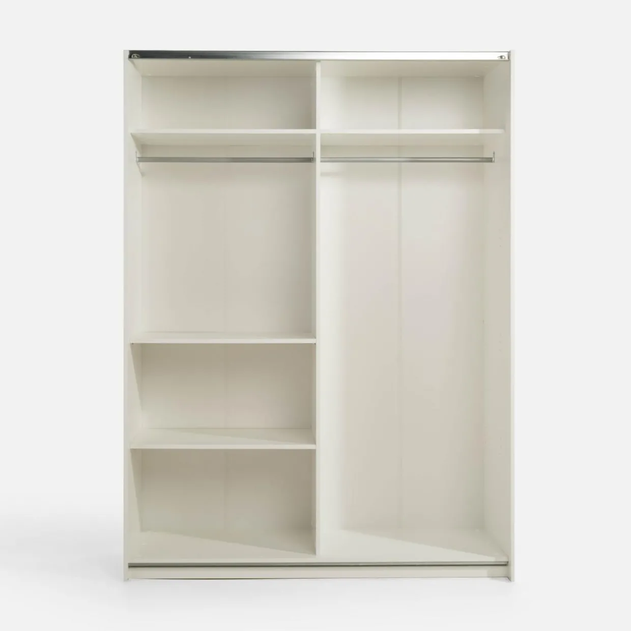 Szafa METROPOLITAN posiada w środku 2 drążki na ubrania oraz 4 półki. Dzięki takiemu układowi oddzielisz swoją odzież od partnera lub sezonową od aktualnie noszonej.