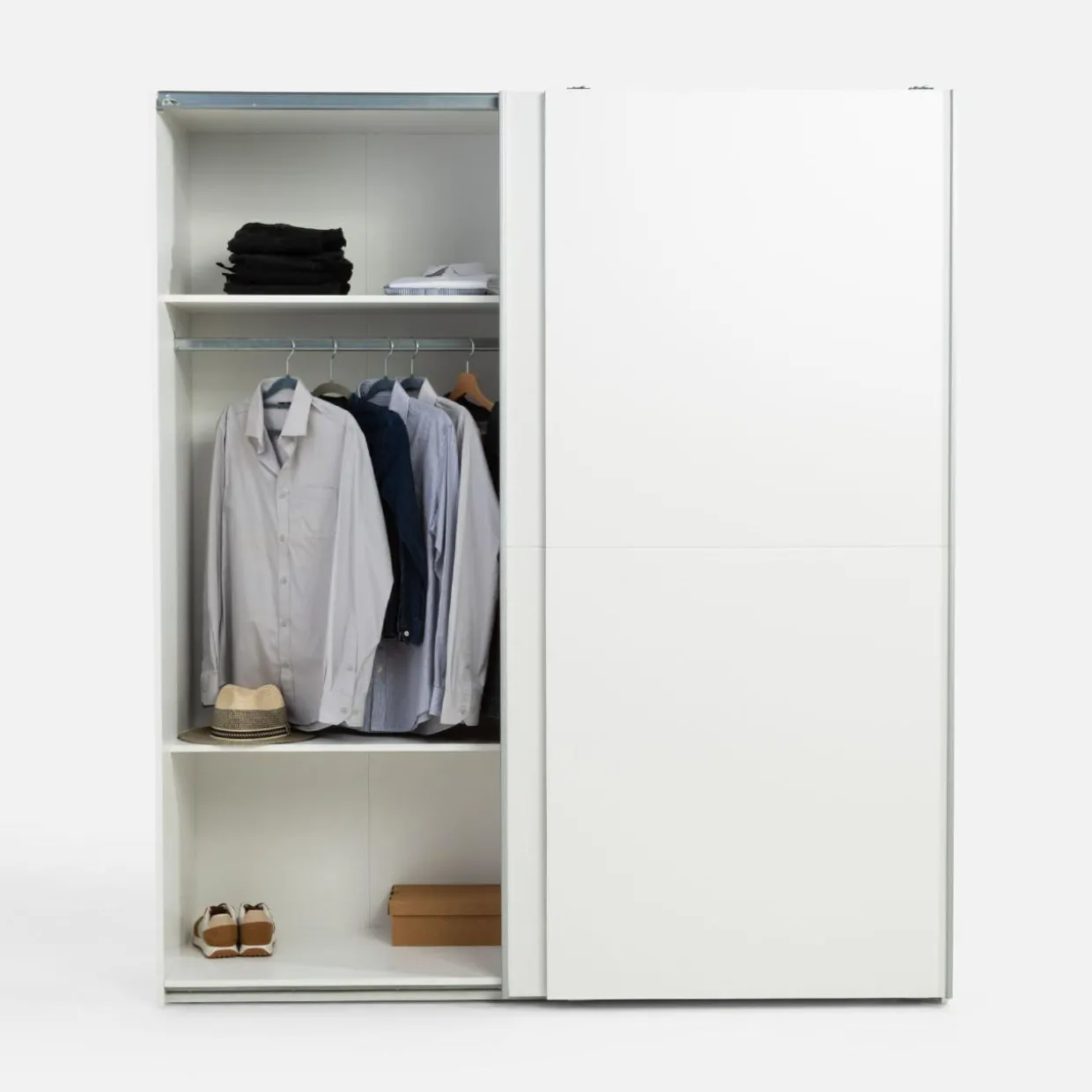- Przemyślane wnętrze – głębokie półki oraz przestrzeń na wieszaki pomieszczą ubrania, pościel lub inne niezbędne przedmioty, co ułatwi organizację.